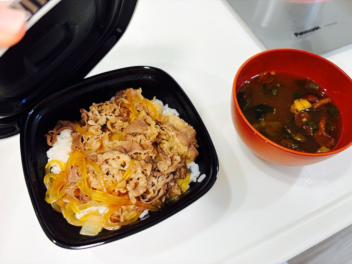 吉野家の一番くじのA賞の容器で吉野家を食す🍚 pic.x.com/fXXCr5TEac