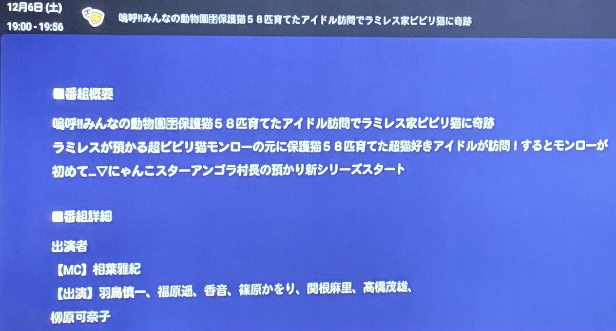 12月6日(土曜) 19:00-19:56 嗚呼!!みんなの動物園 超猫好きアイドル小田さくらが訪問! bangumi.org/tv_events/seas…
