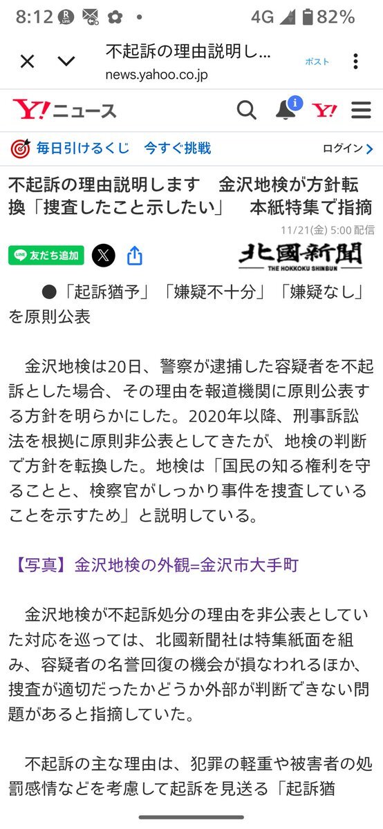 他の全国の地方検察庁、 高等検察庁、最高検察庁も同様方針にするべき、 不起訴の理由説明します、 金沢地検が方針転換、 「捜査したこと示したい」 本紙特集で指摘(北國新聞社) #Yahooニュース news.yahoo.co.jp/articles/73edc…