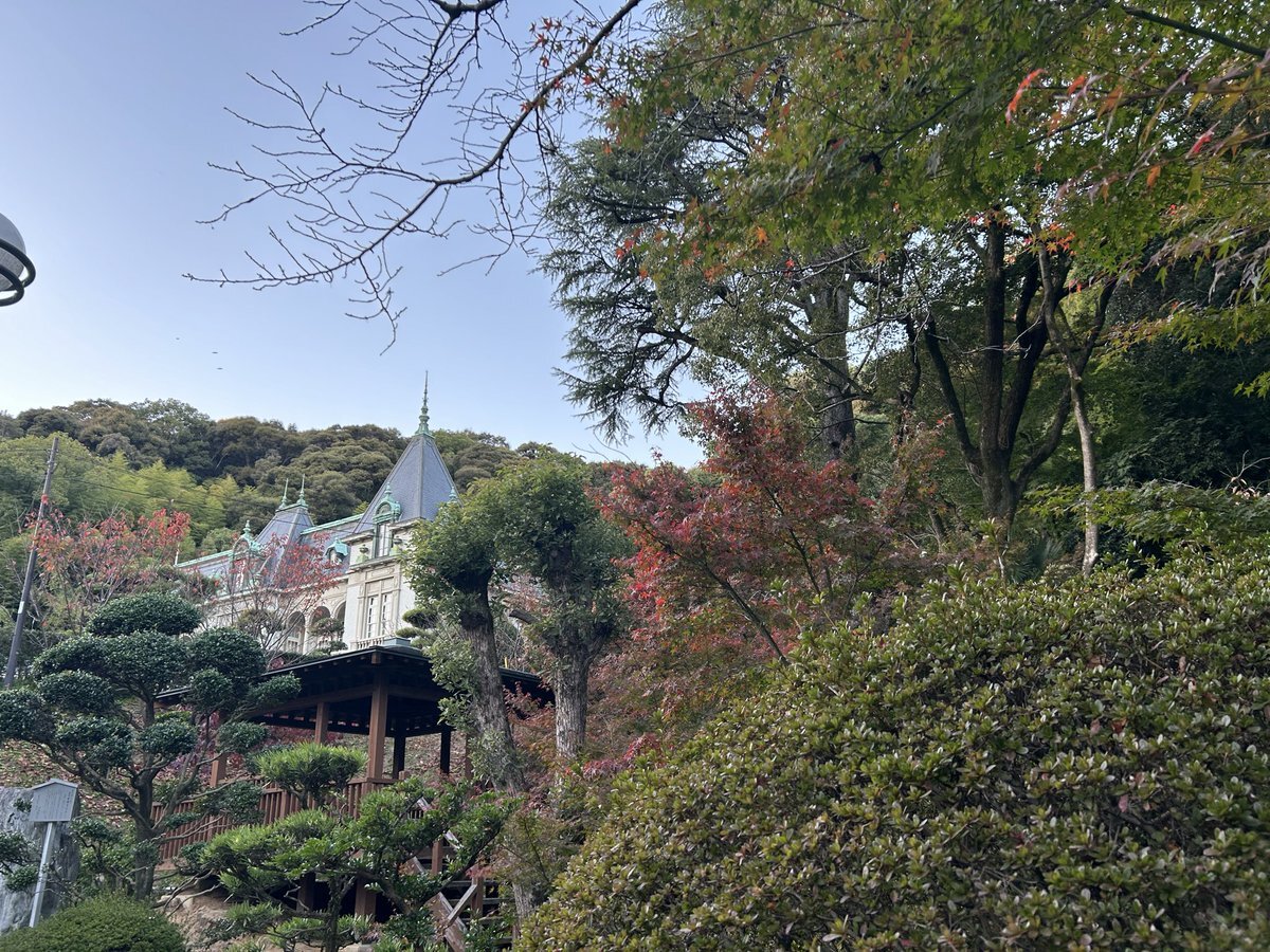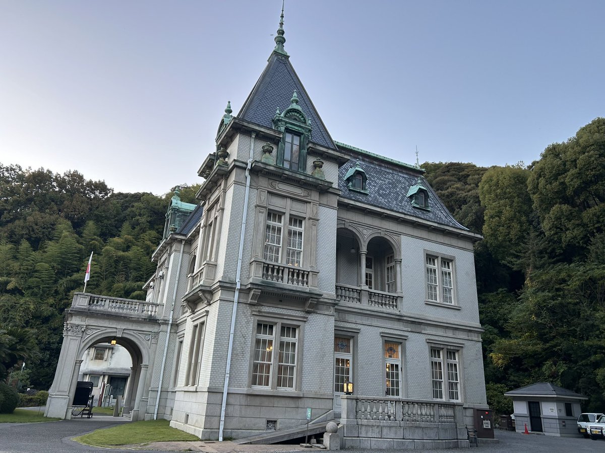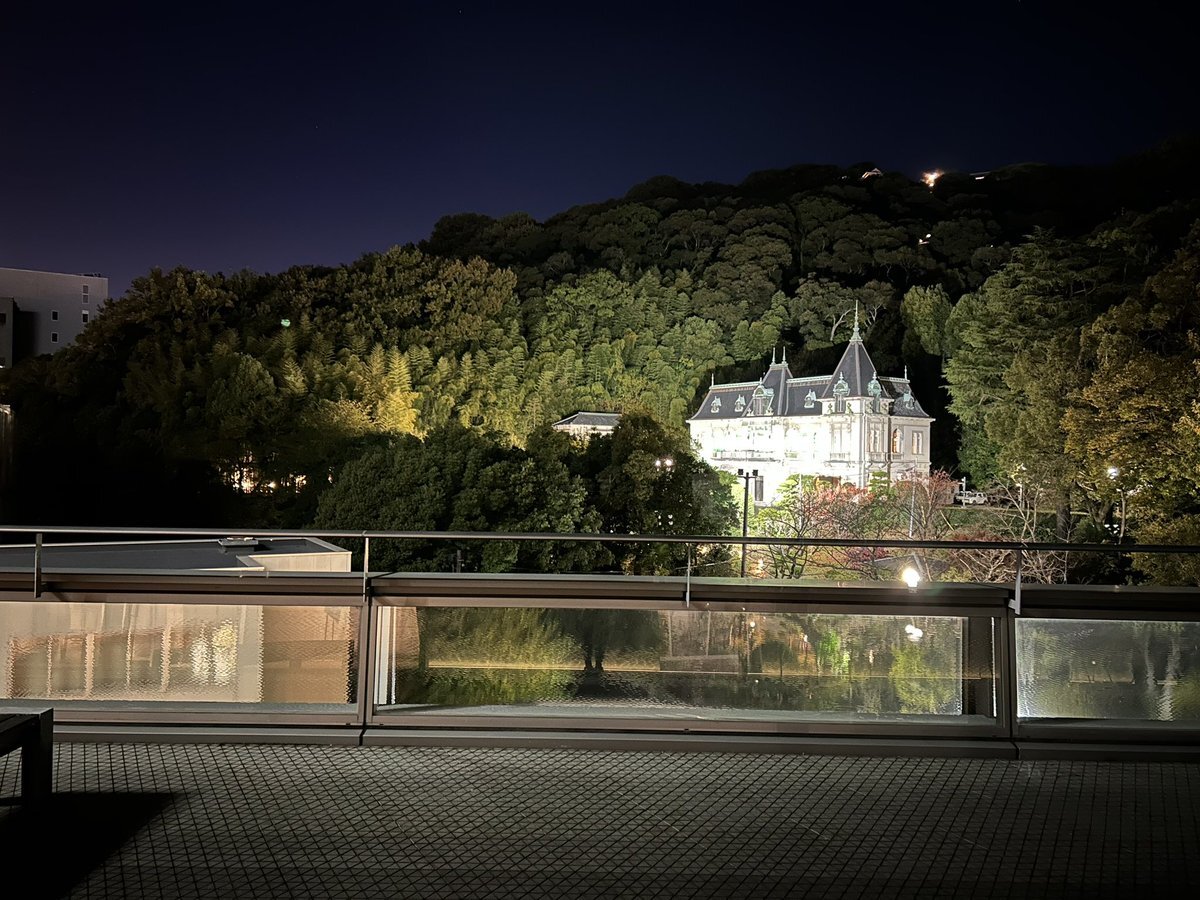 日の暮れた後、坂の上の雲ミュージアムから見えた萬翠荘は、ライトアップされていてノイシュバンシュタイン城の様だった。 これを作った元お殿様はフランス留学の経験もあったそうで、ヨーロッパを懐かしんで作ったのだろうか。よくあるハリボテ風洋館ではなく立派なものだった。 pic.x.com/Ss914KycMh