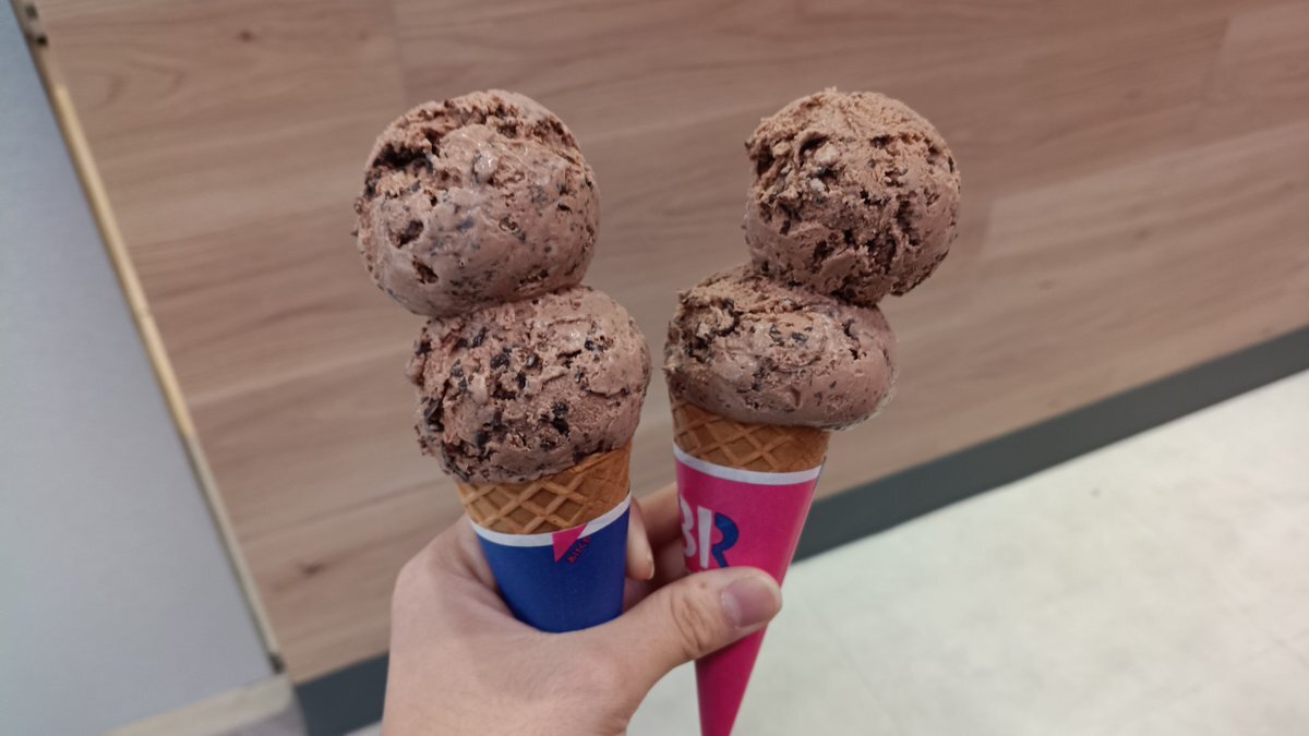 今日の朝配信で夏織ちゃんが、サーティワンのアイス4つを全てチョップドチョコレート🍫にしたと言ってたけど、こういう事かしら?() ※この4つのアイスは後で私が1人で全部美味しく頂きました。 pic.x.com/Sc88EBCUUx