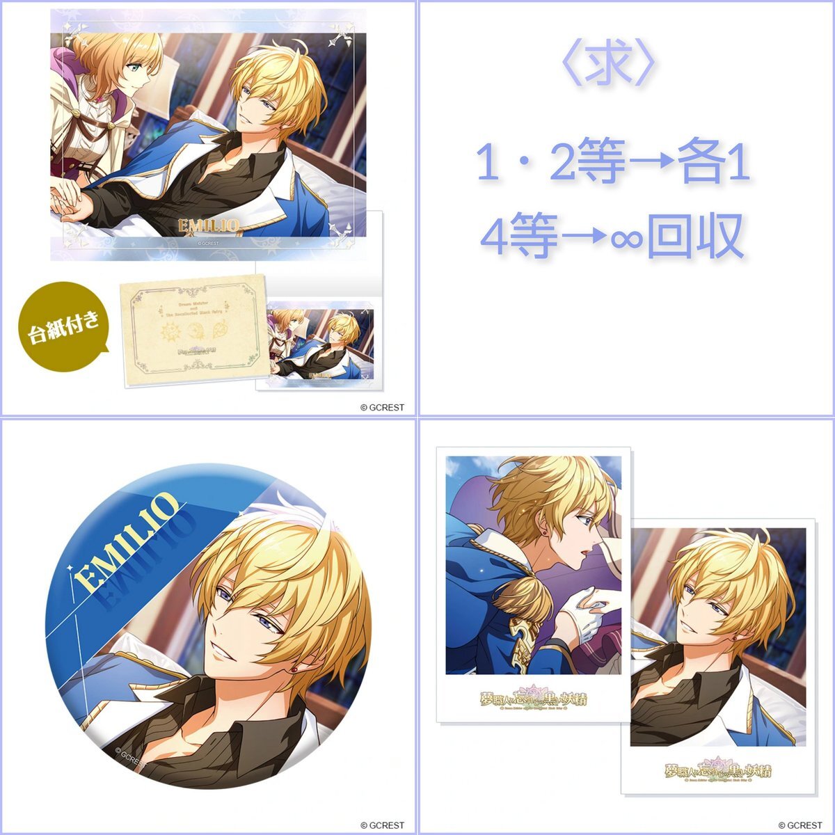 【交換/譲渡】夢職人と忘れじの黒い妖精 セレクションくじVol.4 ゆめくろ ほしくじ 譲▶︎サイラス、アレックス、ハリエット、イディオ、キッド 求▶画像2 エミリオ >> 定価+送料 郵送 譲:1,2等は同賞交換のみ 求:1,2等に対しては下位賞比率違い可能です 検索からでもお気軽にお声掛けください pic.x.com/IHMcgg34BJ