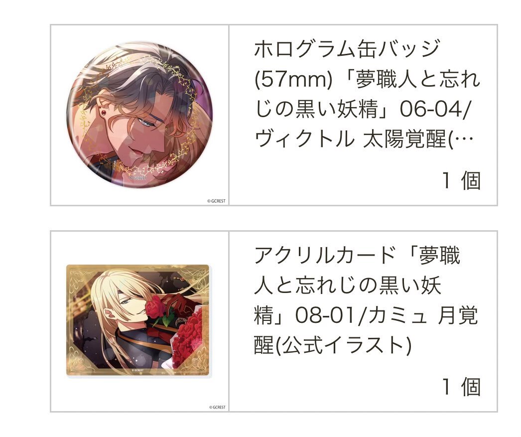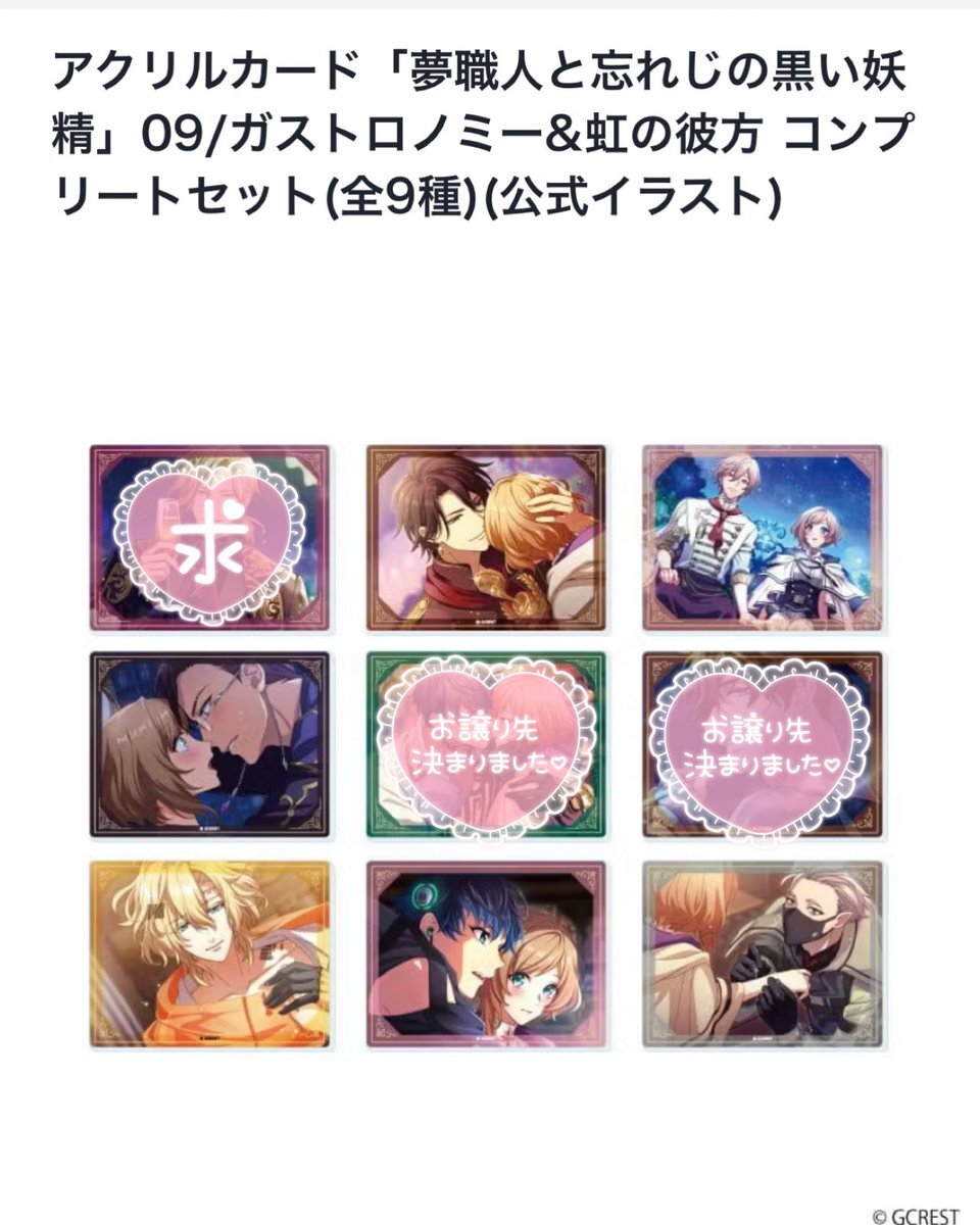 @1【交換 譲渡】夢職人と忘れじの黒い妖精 ゆめくろ eeo Cafe 缶バッジ アクリルカード 譲⇒★オスカー、★クーヘン、リッシュ(アクカ)、ラグーン、トワ、リンク、ホロウ (求) 交換or定価(+郵送代) 缶バッジ⇒キュイ・ヴァルター アクカ⇒キュイ コンプ1セット店舗引取にて予約済み ↓続きます pic.x.com/0xh356PZCZ