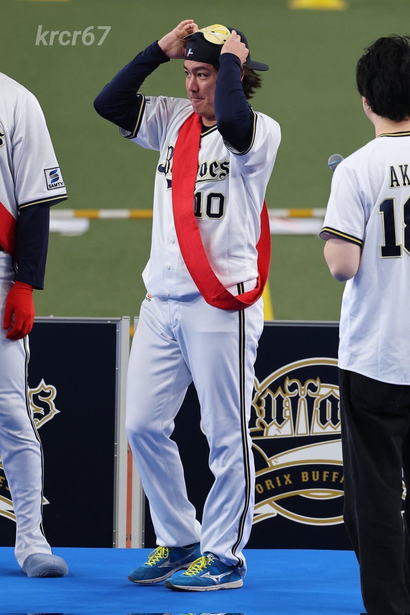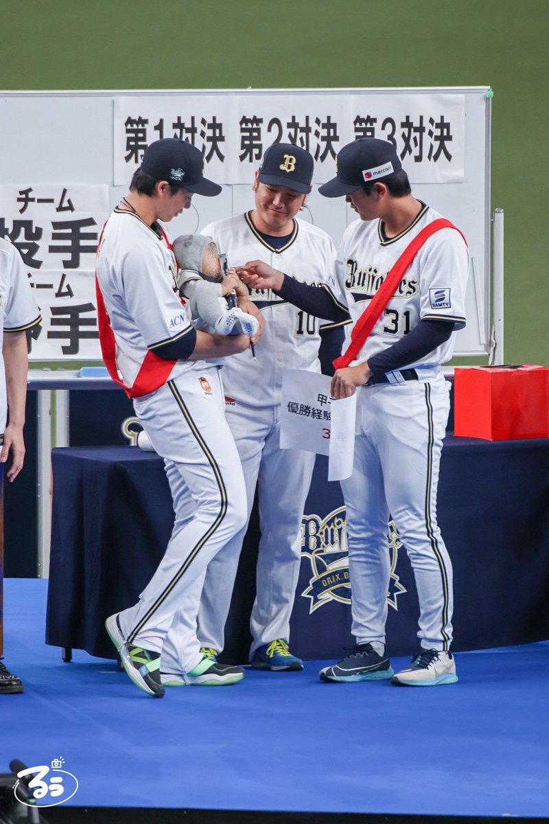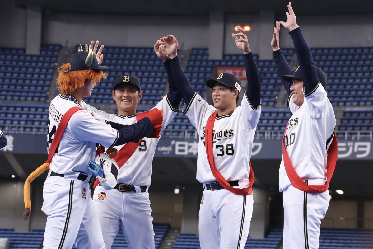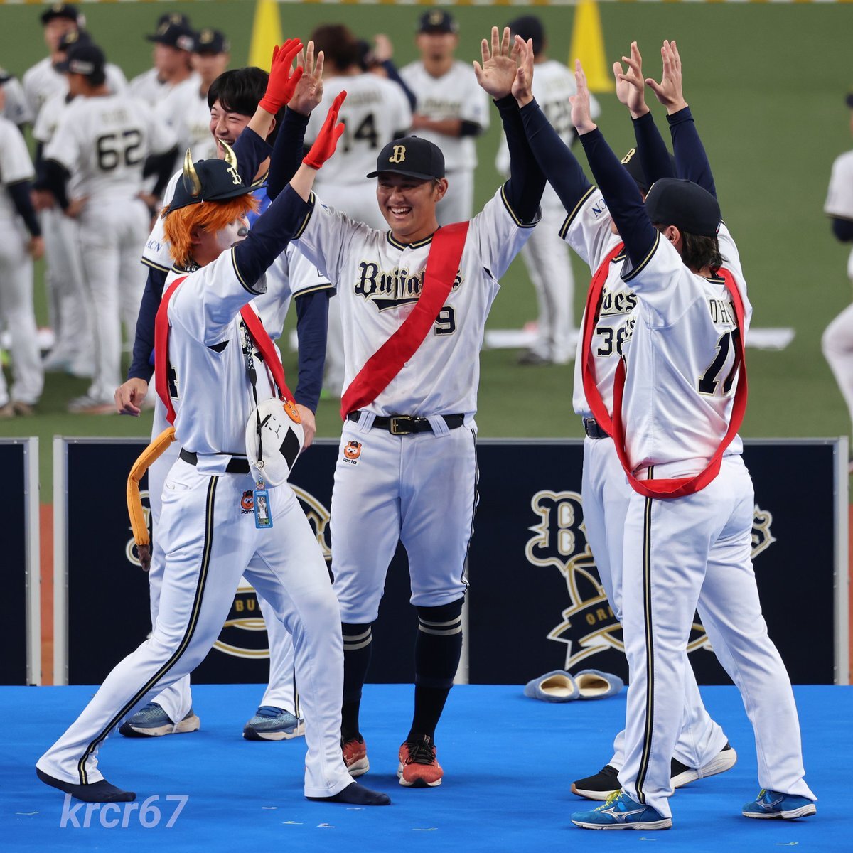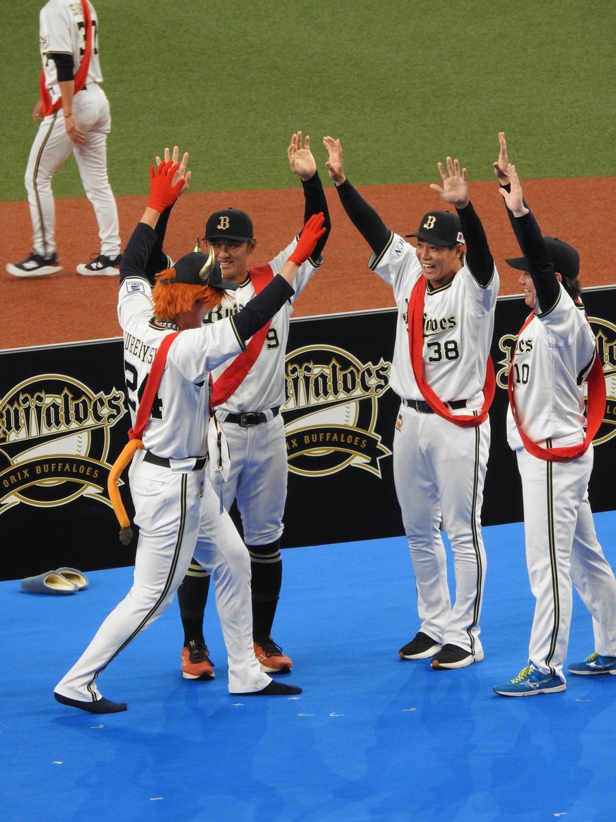 何故そこで共に喜んだんや🤣🤣🤣 #お題はサヨナラホームラン #ベニはバッター #だって嬉しいんだもの #紅林弘太郎 #野口智哉 #来田涼斗 #大城滉二 #Bsファンフェスタ pic.x.com/aJIlXQDOup