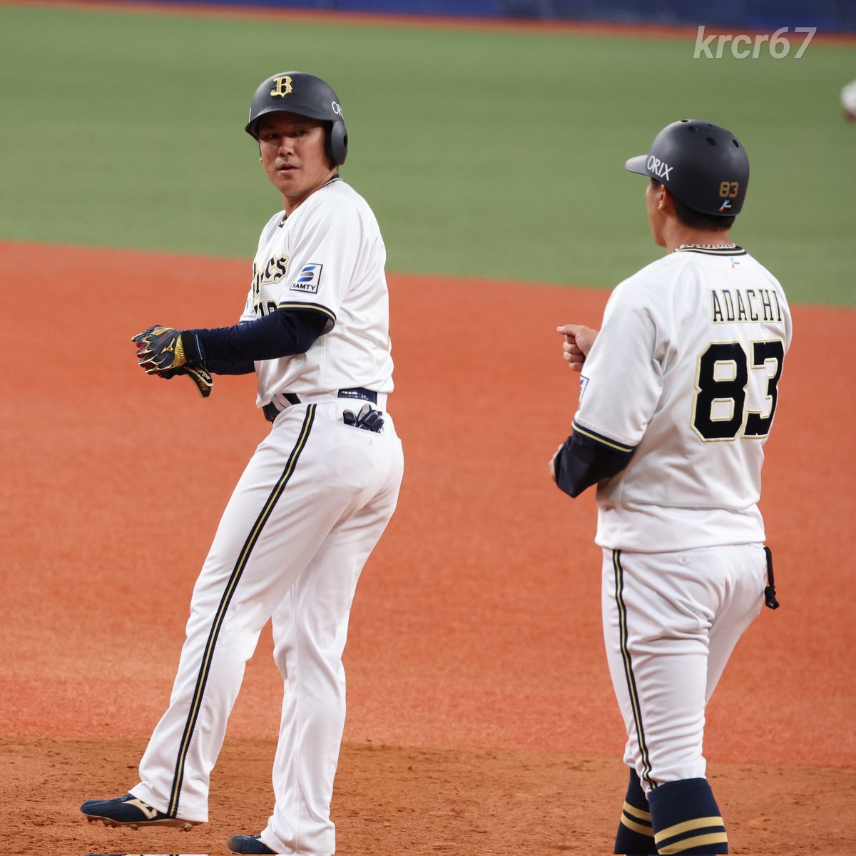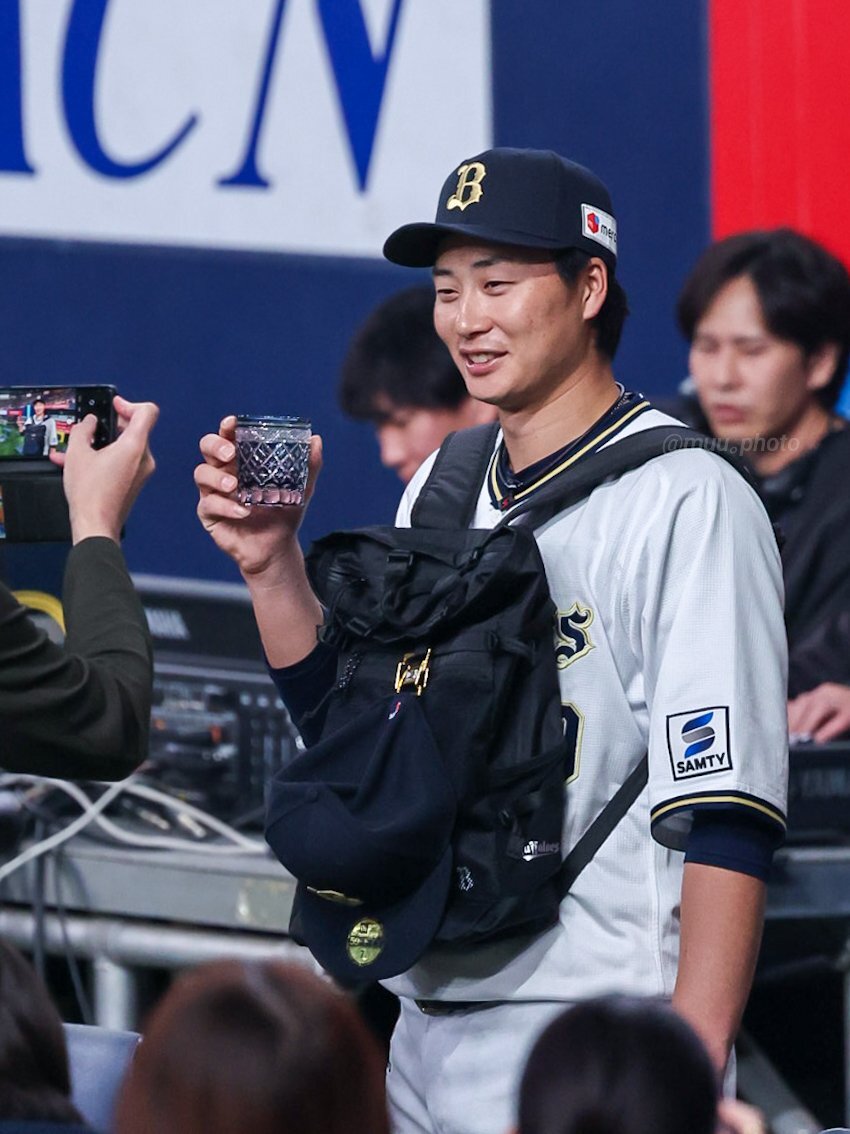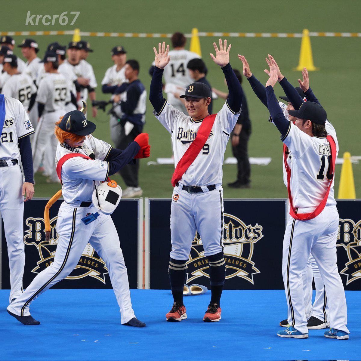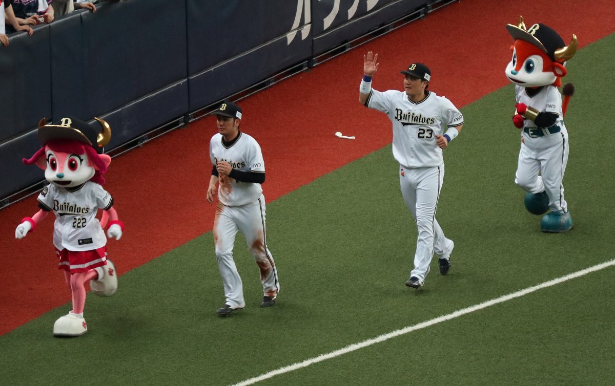 何故そこで共に喜んだんや🤣🤣🤣 #お題はサヨナラホームラン #ベニはバッター #だって嬉しいんだもの #紅林弘太郎 #野口智哉 #来田涼斗 #大城滉二 #Bsファンフェスタ pic.x.com/aJIlXQDOup