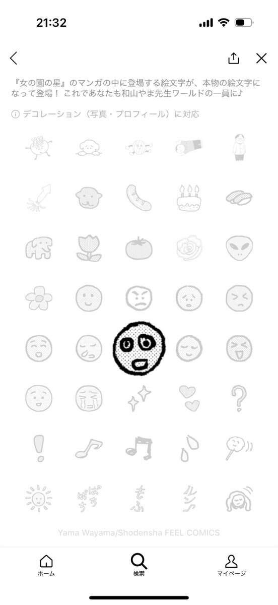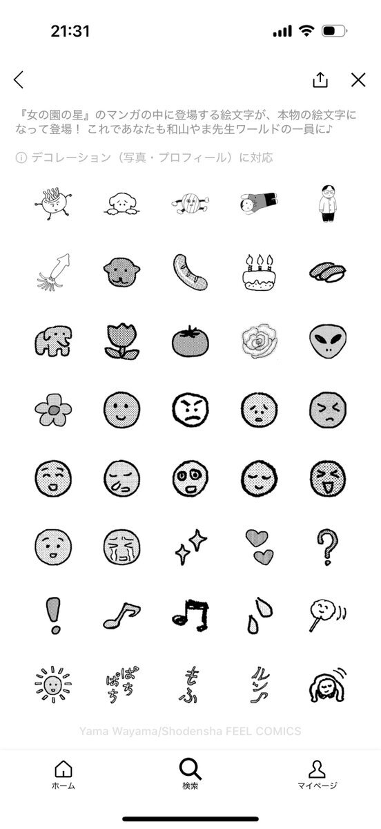 女の園の星のLINE絵文字、拡大するとトーンのブツブツが程良くキモくて最高なので多用している というかほぼこれしか使わん line.me/S/emoji/?id=62… pic.x.com/DS8zZdZyPO