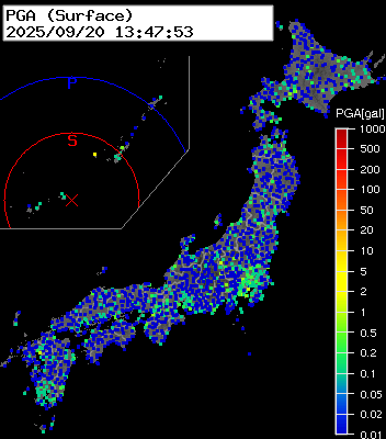緊急地震速報 第5報(最終報) : 2025年09月20日 13時46分46秒 頃発生、推定規模は M 3.9 、深さ約40km、震源地の緯度/経度は 24.6/125.7 宮古島近海です。 推定震央 maps.google.com/maps?q=24.6,12…