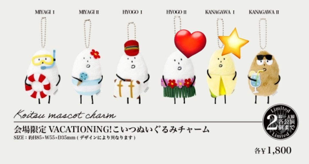 【交換/代行】宮野真守 VACATIONING 譲→🌟 こいつぬいぐるみチャーム:神奈川①×1 Mamorialチャーム:神奈川①×2 求→❤ こいつ:兵庫②(優先)、定価 Mamorial:定価 神奈川1日目にて現地交換or郵送 代行の場合PayPayか銀行振込で先払いして頂けると助かります🙇🏻♀️ リプ欄に続きます↓ pic.x.com/U6Yj8fezZz