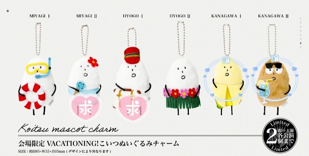 【交換 代行】 宮野真守 マモライ VACATIONING! こいつぬいぐるみチャーム 譲: 神奈川1日目(3体まで代行、交換可能) 求: 神奈川1日目以外全て 代行できる数に限りがございますので全ての方との交換は難しいですが代行できる方いましたらお願いします 神奈川1日目手渡し優先ですが郵送も可能です