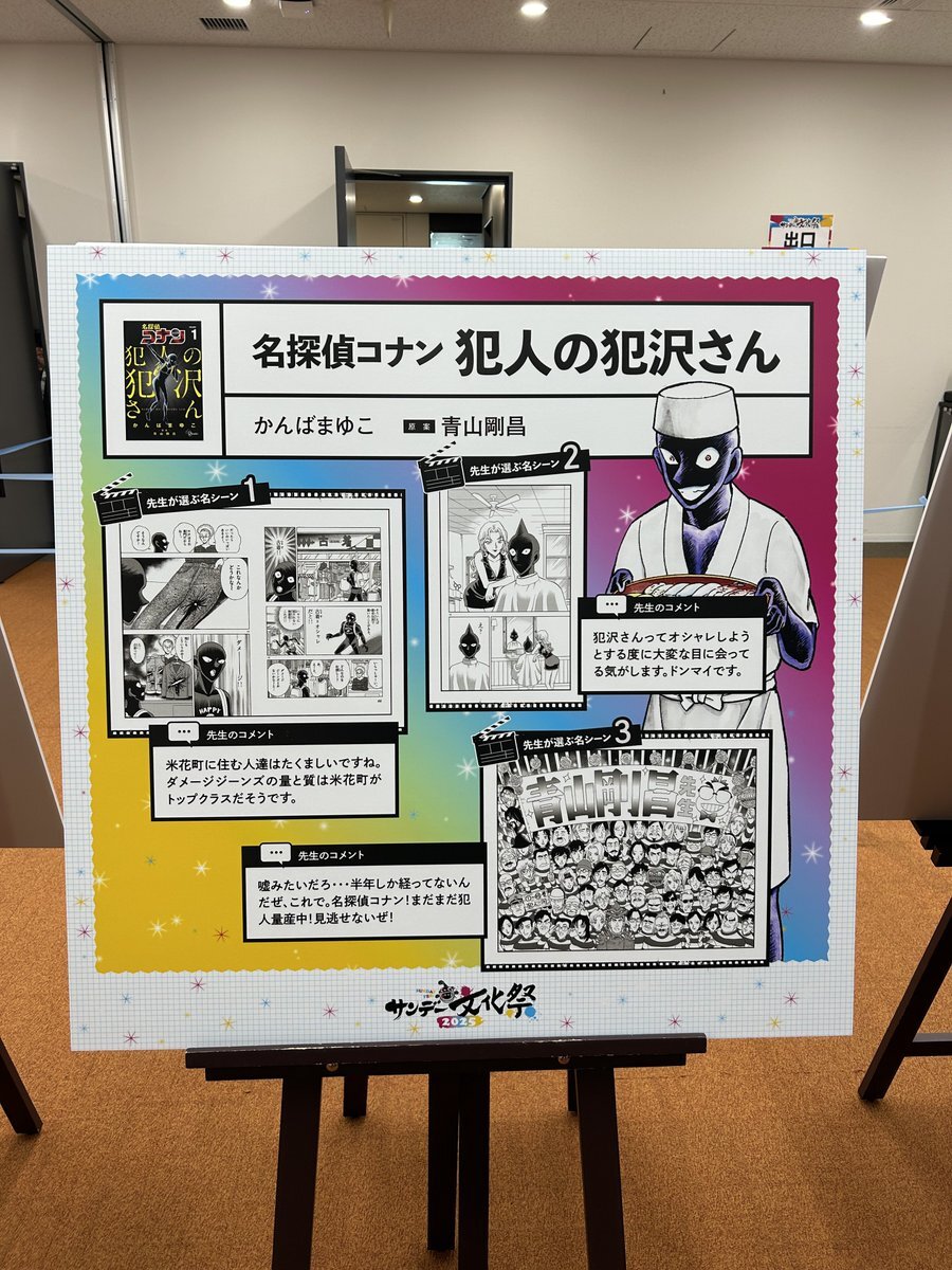 #サンデー文化祭 2025 サンデー作品シーン展! 名探偵コナンの"先生が選ぶ名シーン"は ①72巻「厄介な難事件」 新一と蘭 ②106巻「茜色の千秋楽」 平次と和葉 ③87巻「鞭声粛々夜河を渡る」 敢助と由衣 Sのコミカライズが黒鉄名義なのは、この企画のためにある程度進んでいる必要があったからかな pic.x.com/MGcFtBDOkX