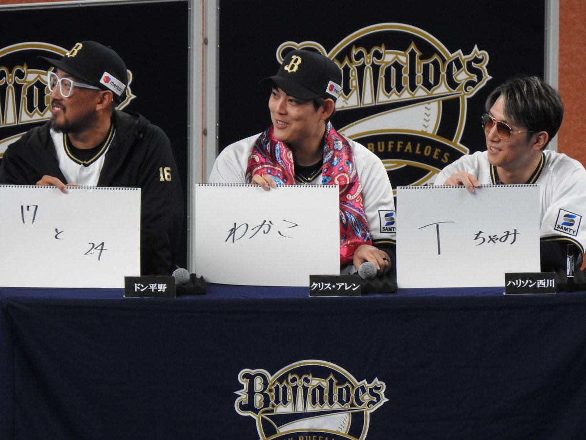 Tちゃみの登場に まんざらでもない ドンクリスハリソン 2025.11.24 @ファンフェス #オリックスバファローズ #Bs2025 #ORIX #ncop_Bs16 #ncop_Bs22 #ncop_Bs7 #平野佳寿 選手 #九里亜蓮 選手 #西川龍馬 選手 pic.x.com/uGGu7nvxDJ