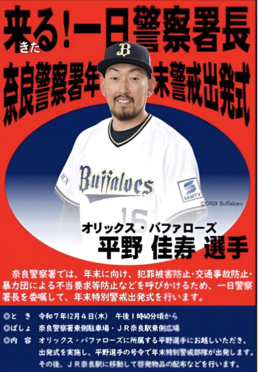 じゃあ奈良警察署の所長は一日平野佳寿かあ… ヒヤヒヤしなさそう