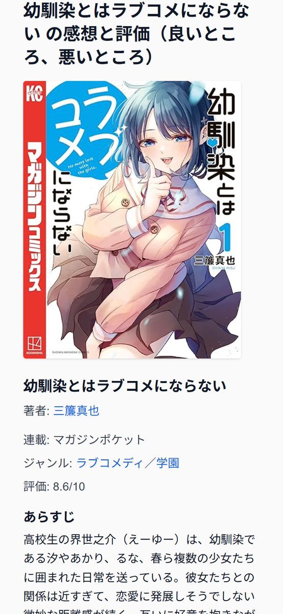 幼馴染とはラブコメにならない 幼馴染たちに囲まれた高校生が友情と恋愛の狭間で揺れ続けるが… 詳細なあらすじや評価、点数をチェック✨ #幼馴染とはラブコメにならない #マガジンポケット #10巻以上の漫画 mangayoshiashi.com/manga/b4bc0c6a… pic.x.com/thyaOaQ4Te