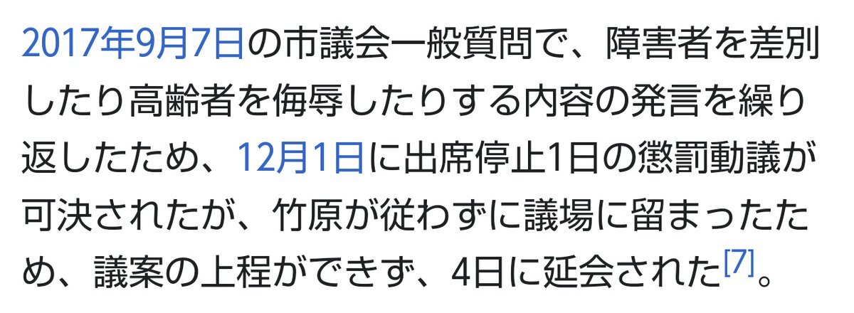 似たケースで、懲罰(出席停止1日)に対する弁明を議会に不許可とされた阿久根市の竹原信一議員(=現在、廃棄物処理法違反で公判中)。 が、出席停止となった竹原市議はなんと議場に居座り。1時間15分粘った末に議長が根負け、本会議を延会。 更にこの居座りに対して戒告の懲罰を科すことになったが… x.com/L_Wakamono/sta…