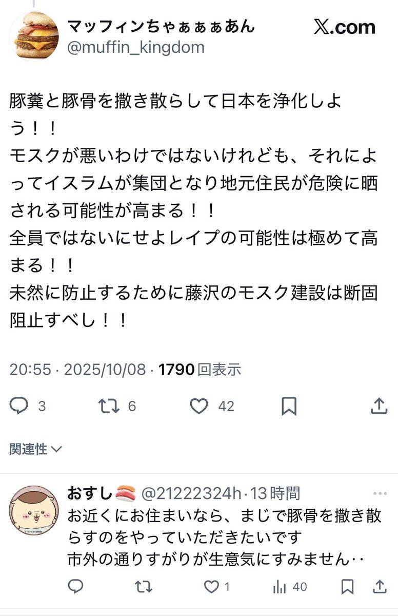 返信先:@MYmelodyn_n1建築主の宗教法人アッサラームファンデーションが合法に土地を取得して自費でモスクを建てる分には、我々は何も言えません。国などの補助金が入っている・入る予定なら所轄省庁に抗議。豚などの実力行使は法治国家日本の国民に相応しくないかと…誇りを捨てずに行きたいところ assalaamfoundation.jp/ja/about/