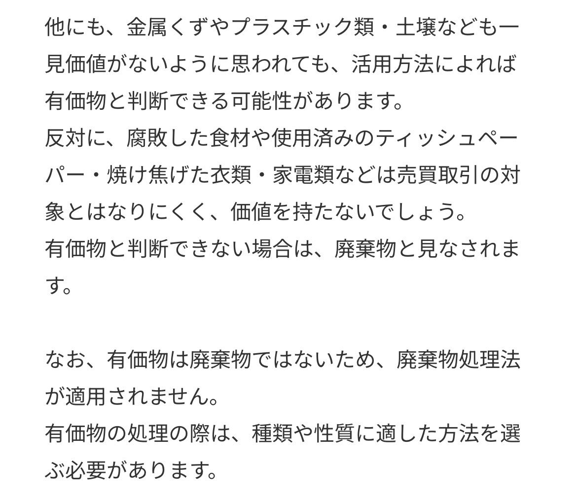 返信先:@onoderamasaru廃棄物処理法上の分類で、 廃棄物か有価物かの定義がありましたね。 j-ems.jp/shogun/c-colum… pic.x.com/9fhjU6R2PY