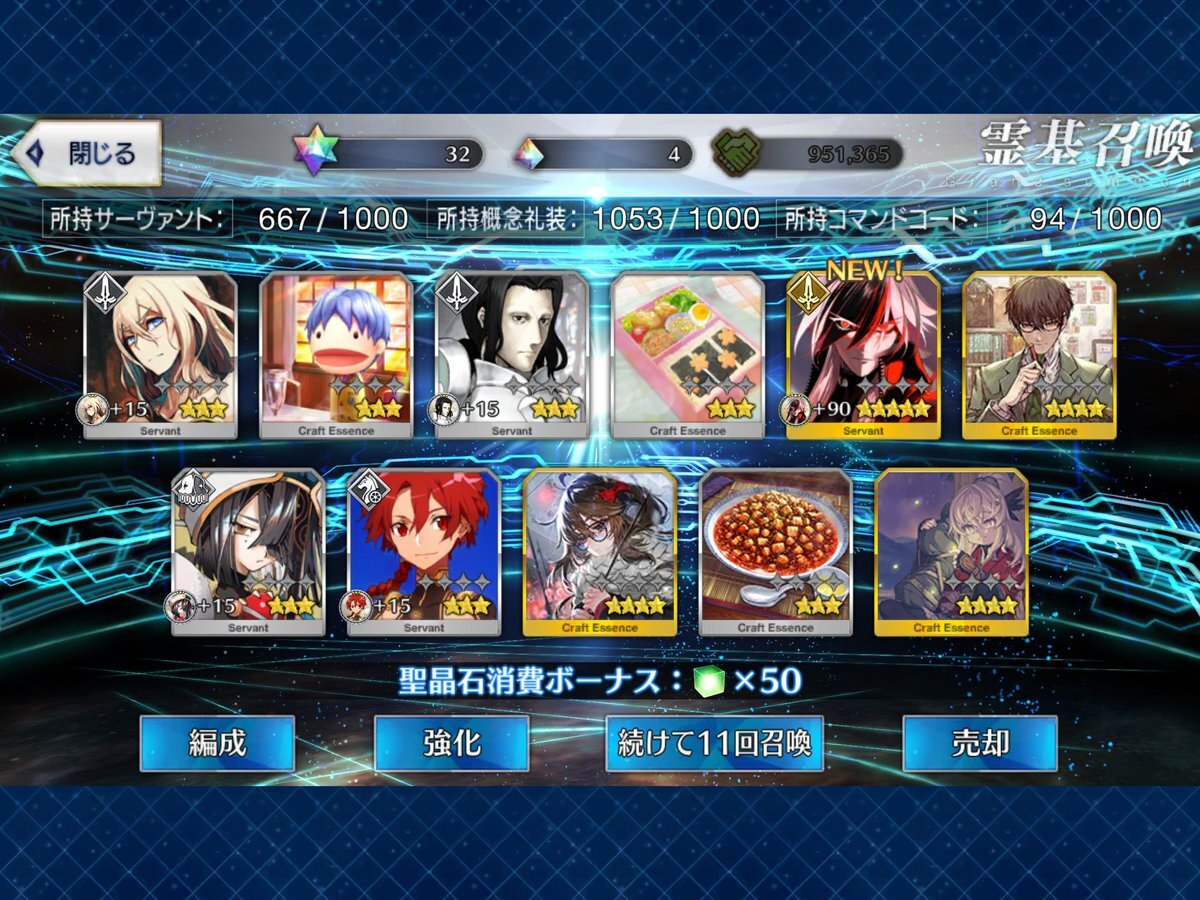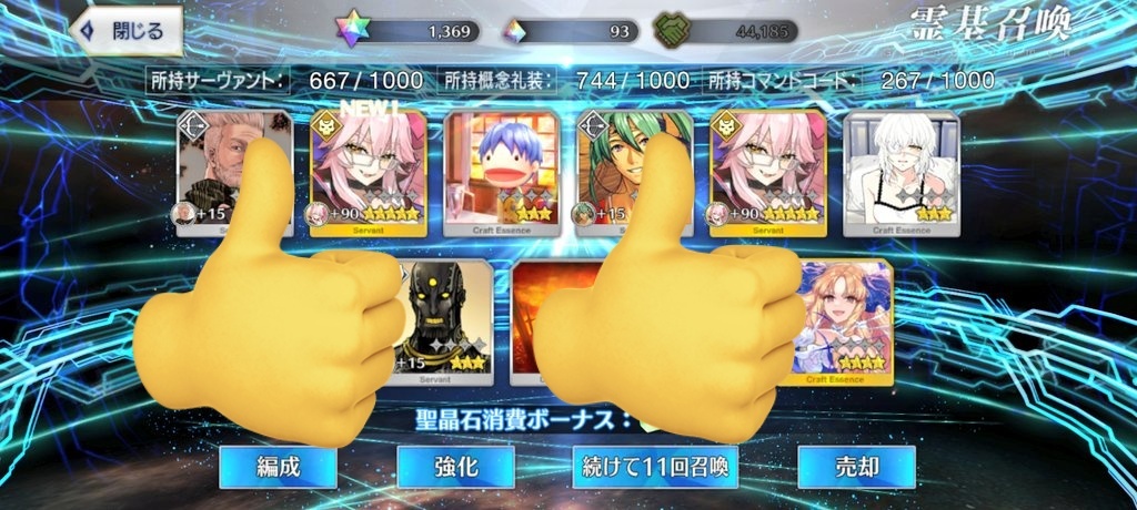 近藤さん欲しさに150何個あった石と11枚の呼符を溶かしきり、課金してギフトコード入れるも藤堂くんが強くなったあの日から、鯖の最終再臨まで育成した時に貰う石、ありったけの強化クエスト、周回中時々絆Lvが上がるたび貰った石、マスターミッションで貰う石でなんとか100連貯めた努力が今、報われた pic.x.com/28AXi5wjnc
