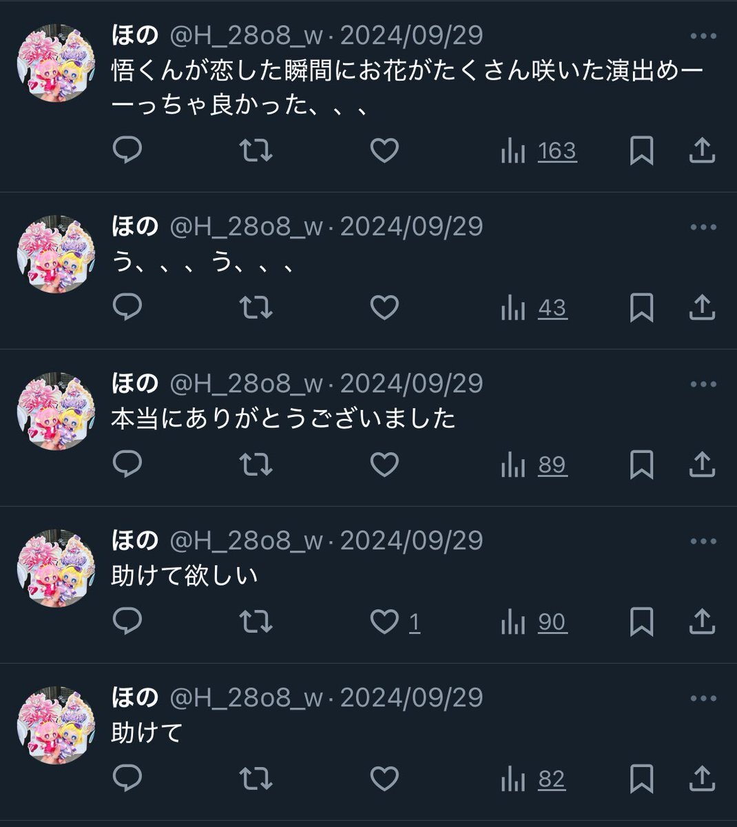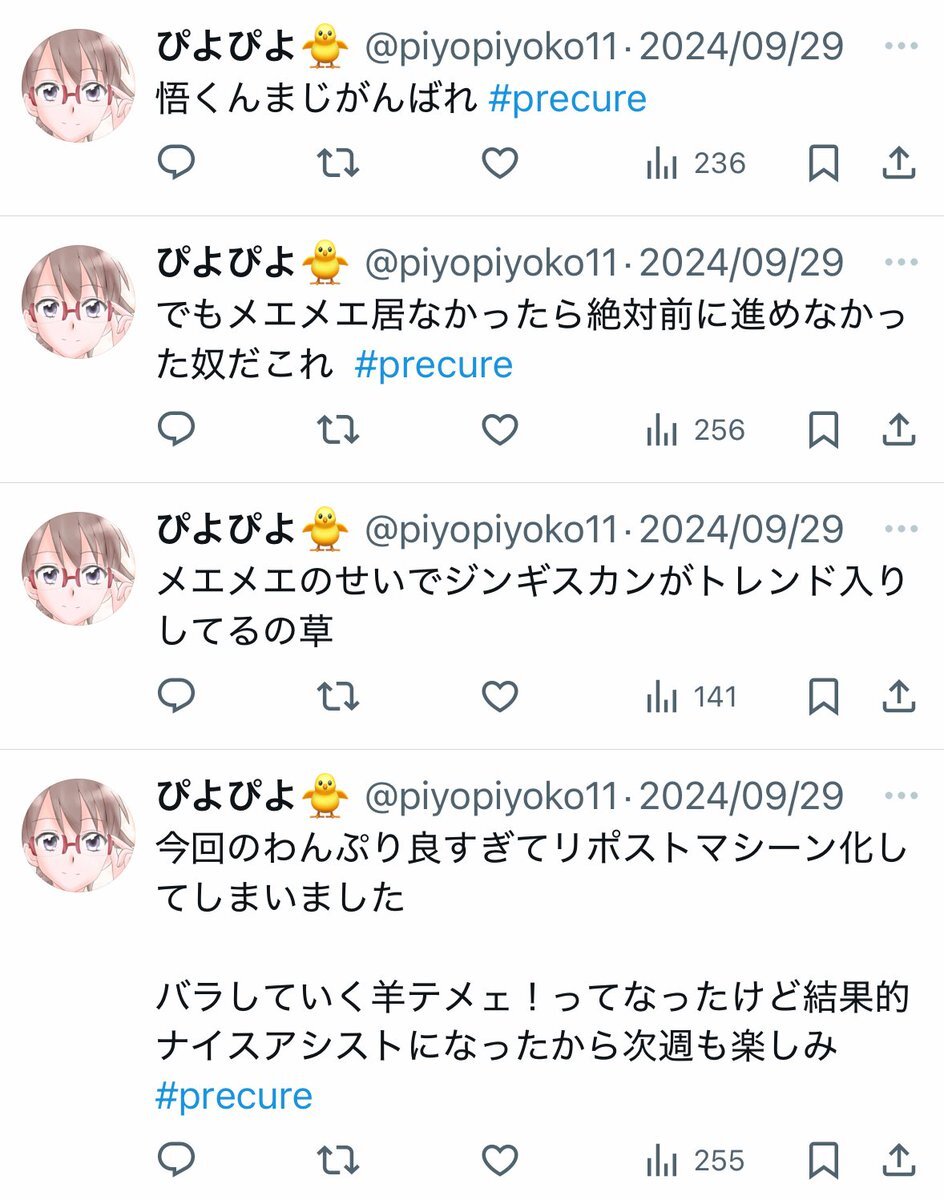 一年前の今日、私はヰ世界情緒さんのライブで知り合った地元が近いうめつきさんに私の家で𝐊𝐈𝐍𝐆 𝐎𝐅 𝐏𝐑𝐈𝐒𝐌を視聴してもらう会を計画していたが、悟の告白大作戦を見た後本当にこんなん1人で抱えきれへん!となり、プリキュアのことを何も知らないのに邂逅早々にとりあえずTVerで見てもらった