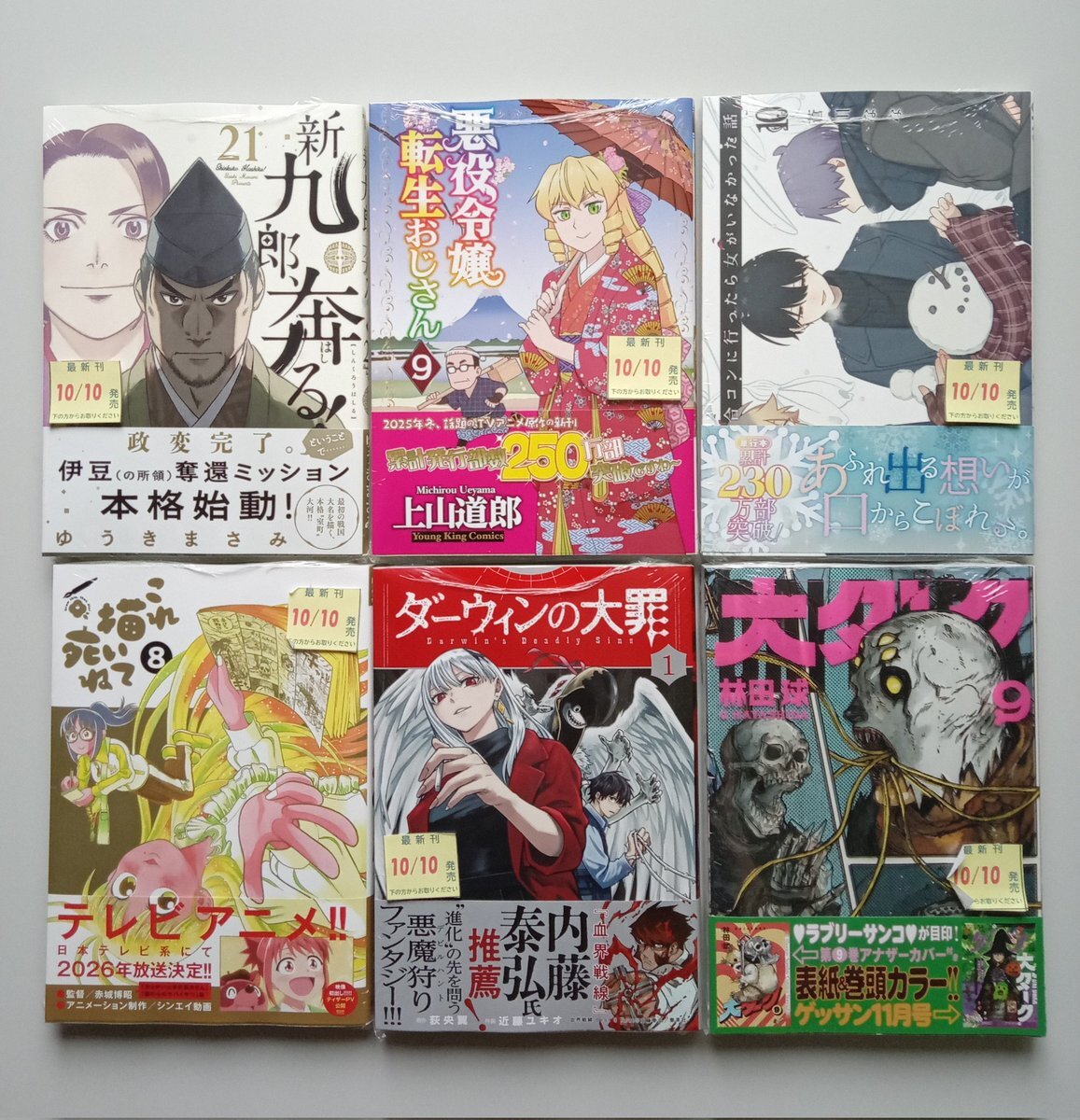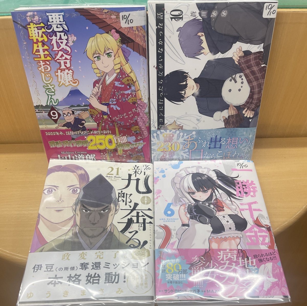 【📚本日入荷②📚】 👑『#悪役令嬢転生おじさん 』9巻 👉最強おじさん、今日も麗し🌸 ⚔️#新九郎奔る!(21) 🥊#一勝千金(6) 💓#合コンに行ったら女がいなかった話(10) ご飯🍚持ち込みokの漫画喫茶です😎✨ #三軒茶屋 #漫画喫茶 #今日買った漫画 pic.x.com/W9M4gr91Pj
