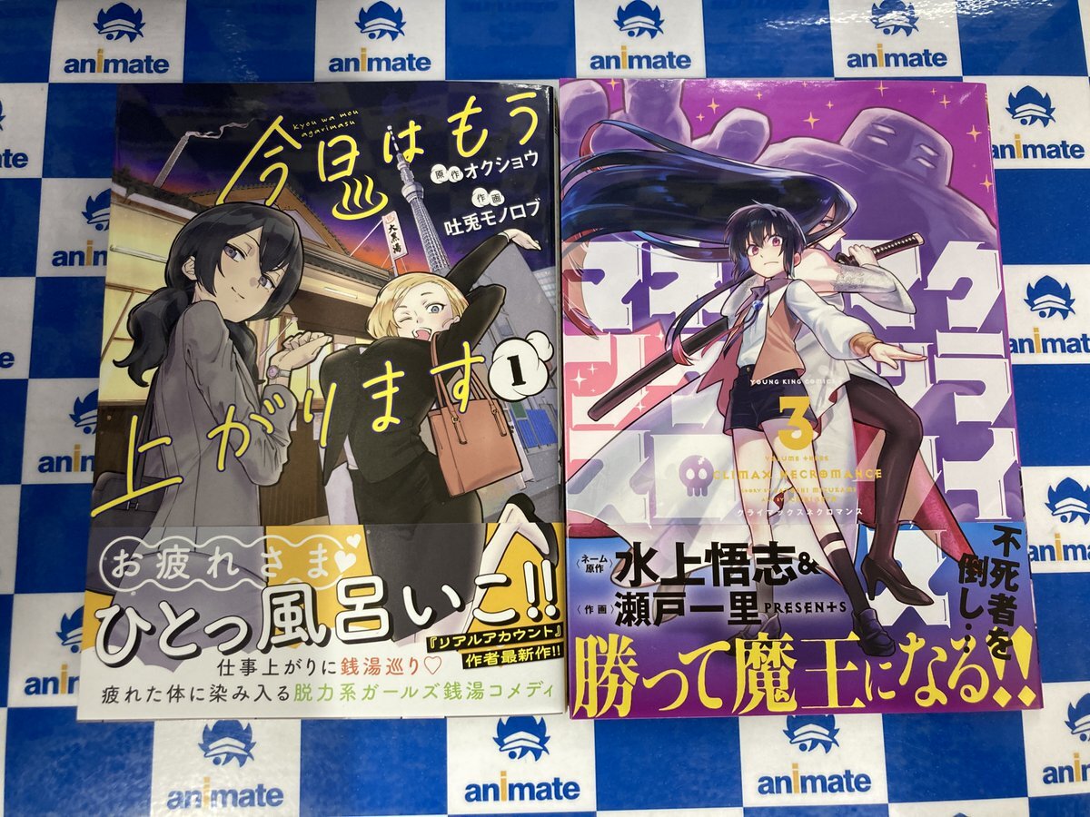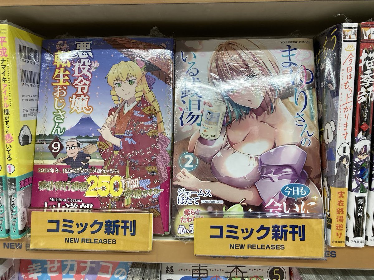 【書籍新刊情報】 『まゆりさんのいる銭湯(2)』 『悪役令嬢転生おじさん(9)』 『今日はもう上がります(1)』 『クライマックスネクロマンス(3)』 入荷しましたカイ! pic.x.com/o0JxygJHyB