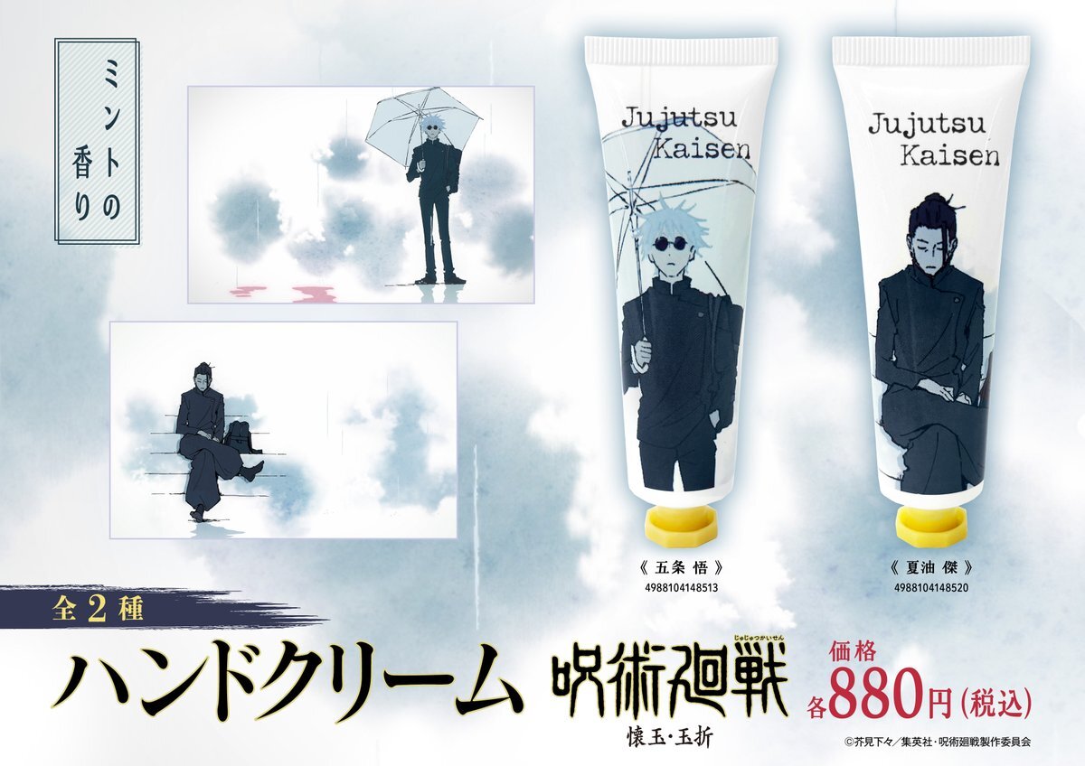 TVアニメ『#呪術廻戦』より虎杖たちと、 「#懐玉・玉折」より五条たちの TVアニメEDビジュアルを使用した ハンドクリームが発売決定! 発売時期などの詳細は後日ご案内! 続報をお楽しみに! #TOHOanimation #JujutsuKaisen pic.x.com/Vk9pS9p0BE