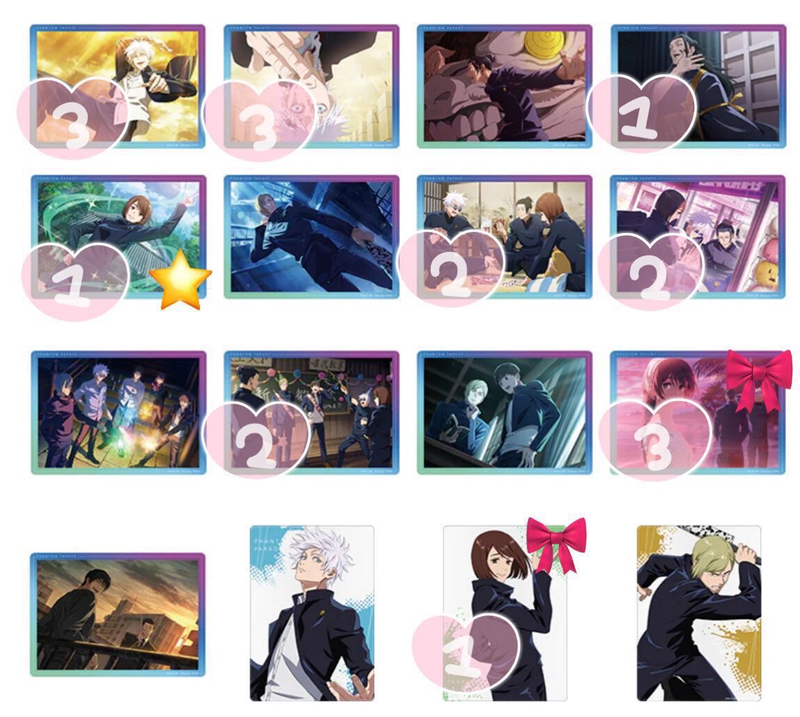 <交換・譲渡>呪術廻戦 ファントムパレード クリアカード 懐玉・玉折 ファンパレ 【譲】 画像記載数 【求】 各440円+送料 無印は🎀>⭐️同数含むのみ 郵送📮 pic.x.com/SpR3tFrbWM