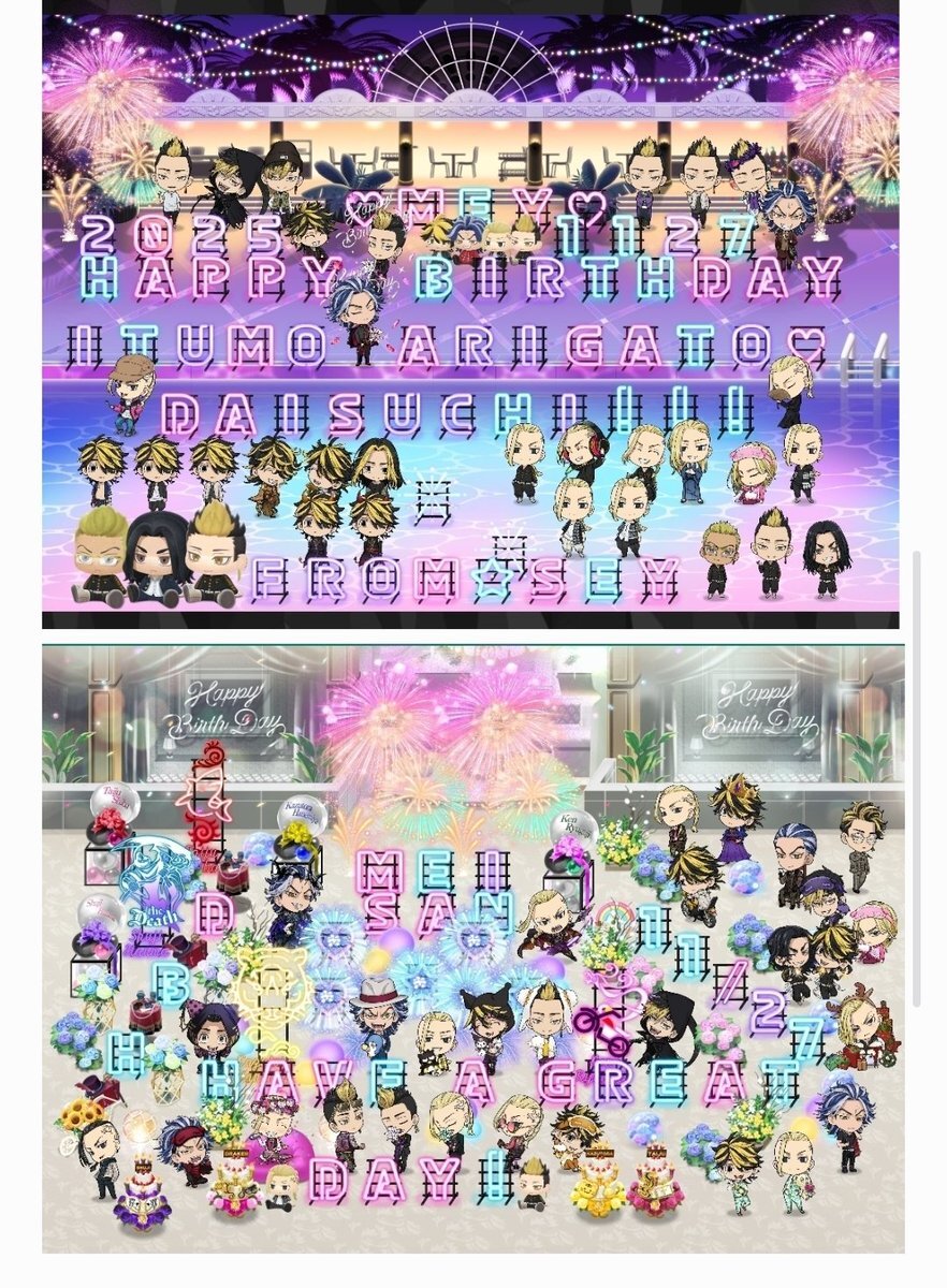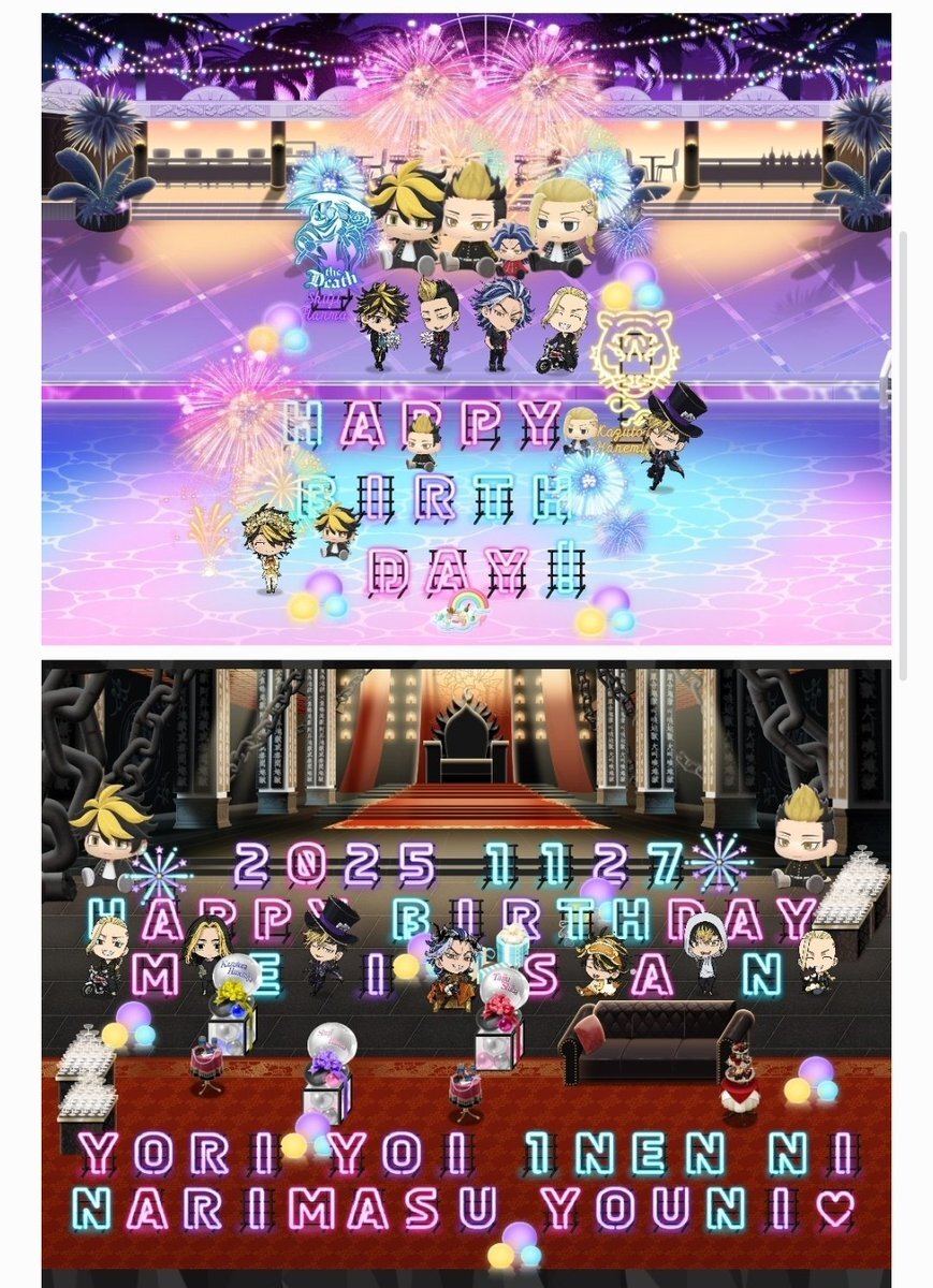 祝われる年でもないのですが私事で😭 アクティブに稼働してるアプリ内で今年は沢山お祝いして貰って大変嬉しかったです😭😭💞 奇跡的でも、ダチの方いらっしゃったらありがとうの想い届けっっ🙏✨󾭛 数日前から承認欲求爆発していためいでした!本当に本当にありがとう😭✴️ #ぱずりべ #東リベ pic.x.com/v5E8WLigkw
