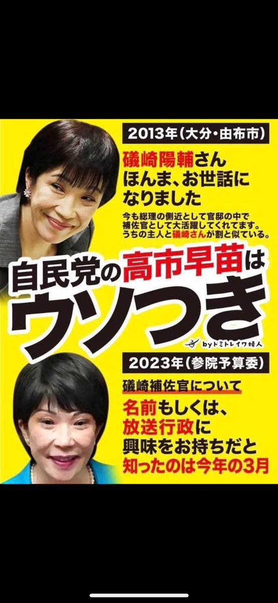返信先:@takaichi_sanae政治は国民のもの? 統一教会と日本会議のスパイの高市早苗の独裁政権なのに? 嘘ばっかりついて中国との外交で国民を危機に陥れた自民党の代表・高市早苗 国民の為に即刻辞任してください #嘘つきは自民党議員のはじまり #戦争大好き高市早苗