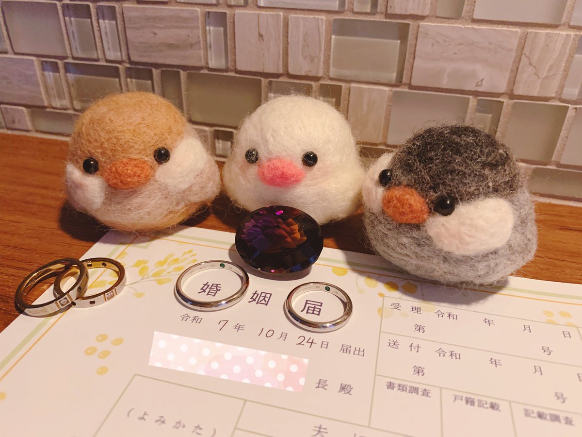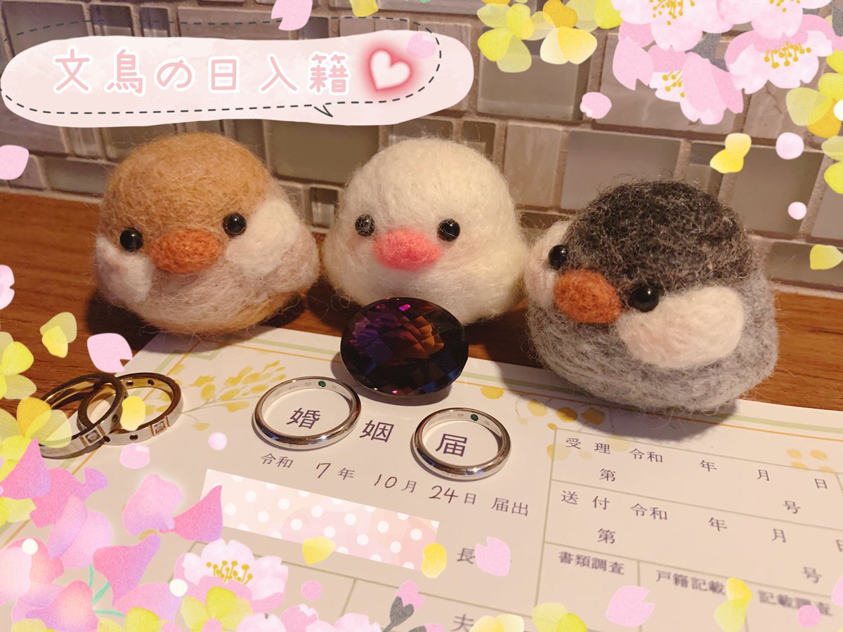 彼とは引き続き関東と関西の遠距離でお付き合いしておりましたが、8年目の今年5月にプロポーズをされ、晴れて文鳥の日の10月24日に入籍しました💍 今は引越しの準備期間なのですが、12月から彼の所へ引越して彼と文鳥ず達と暮らす予定です🌸 pic.x.com/3gjzqX2odR