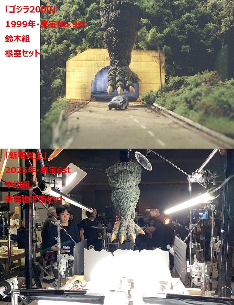 「新宿炎上」の地下街で天井を突き破るゴジラの足は「ゴジラ2000」の根室の街で使用したゴジラの足と同一のようです。 東宝映像美術さま、長きにわたり保管いただき感謝します。 pic.x.com/eA0RhqjAHg