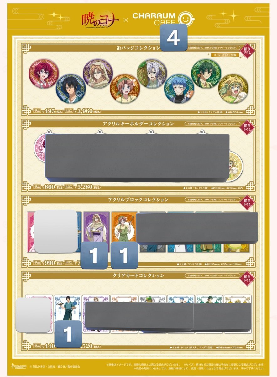 【交換】暁のヨナ キャラウムカフェ 譲:ヨナ,ハク,キジャ,シンア,ゼノ,ユン,スウォン (缶バッジ:各4点、他は数字分) 求:同種ジェハ ✔本日池袋手渡し(14時頃まで) ✔郵送OK(←プロカ必読) ✔まとめて優先 (この後予定があるため早めに離脱する可能性あり) よろしくお願いいたします✿ pic.x.com/cAm7UNalNQ