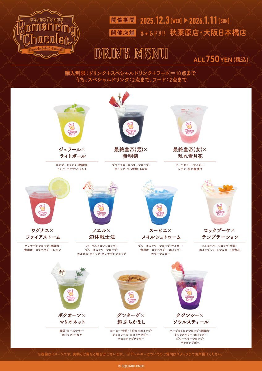 / ロマンシング サガ2 リベンジオブザセブン×#きゃらドリ!! \ 🍫Romancing Chocolat🍊 💡コラボメニューはこちら💡 作品をイメージした コラボドリンク&フード(ノベルティ付)のご提供! 詳細はこちら✨ charadri.com/event/rs2r2512/ #ロマサガ2R #リベサガ