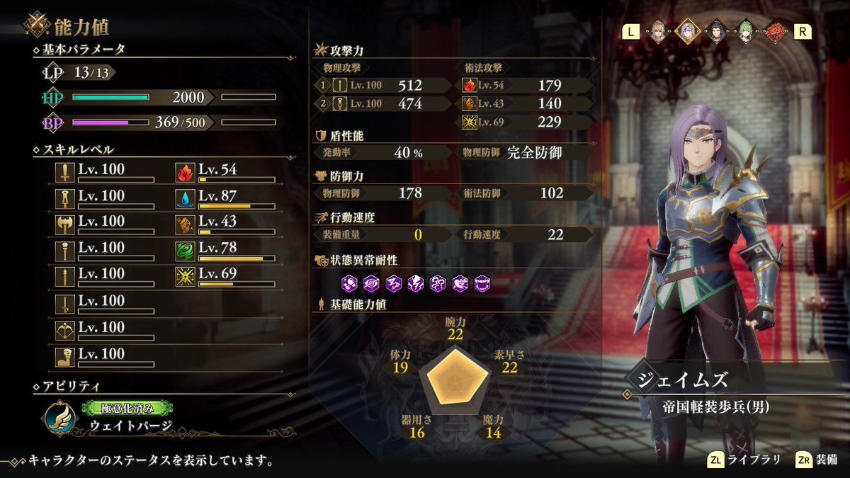 別ゲーだけどロマサガ2Rのジェイムズに狂いすぎて、最終皇帝以外で一人だけ術以外の全Lv.MAXとかいう、 弊帝国で偏寵愛を受けまくっている最推し(超美男子かつイケボなのと槍持たせた時の長髪からチラ見えするうなじが好き) #ロマサガ2R #リベサガ pic.x.com/nCDe9TSrVC