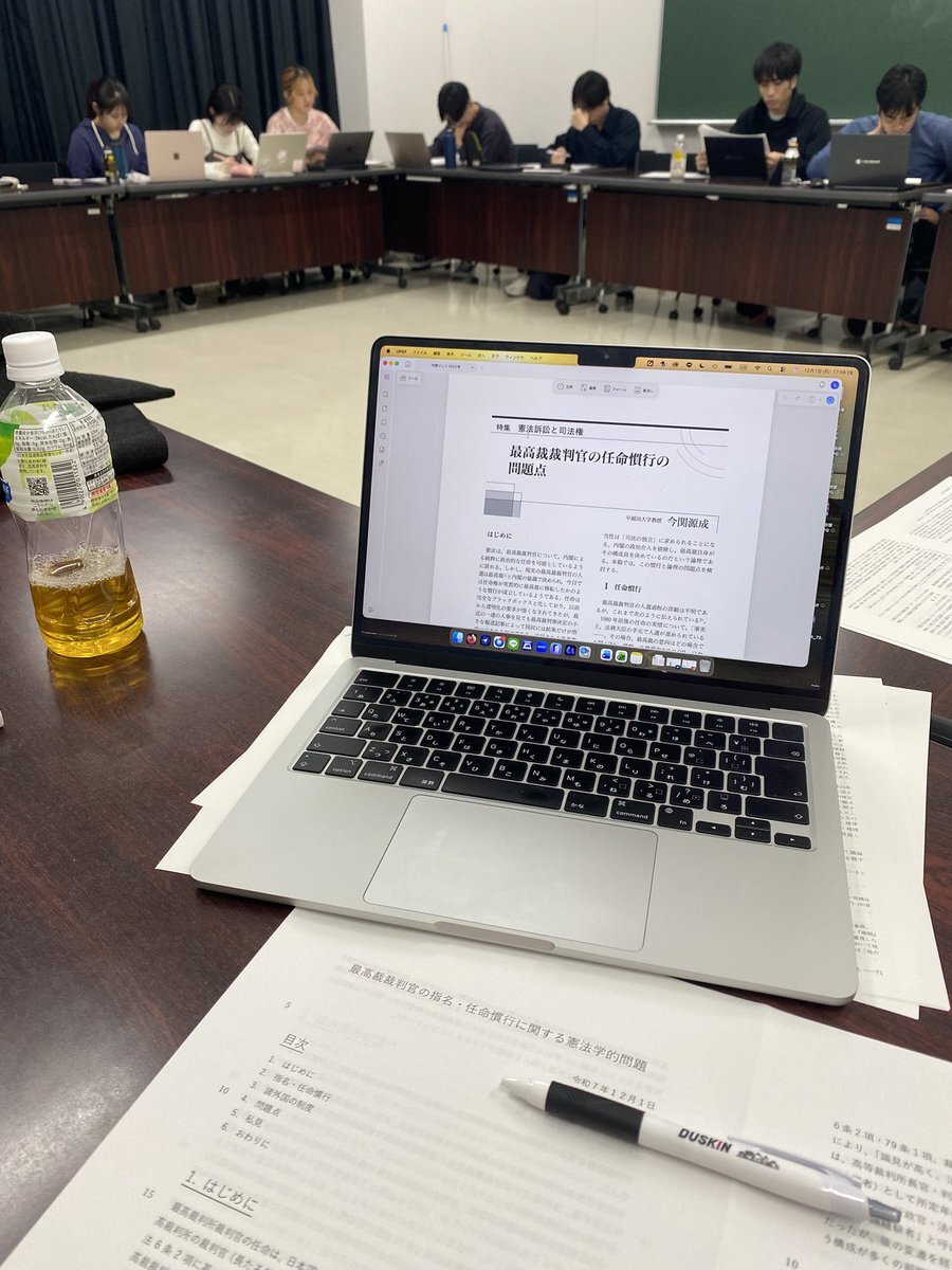 ゼミなう。本日の個人報告テーマは、最高裁判事の任命方法・過程について。来月の #南野ゼミ東京研修旅行 で訪問する予定の最高裁について詳しく学ぶことができ、とてもタイムリーで良いと思います! pic.x.com/daNIeHzBIB