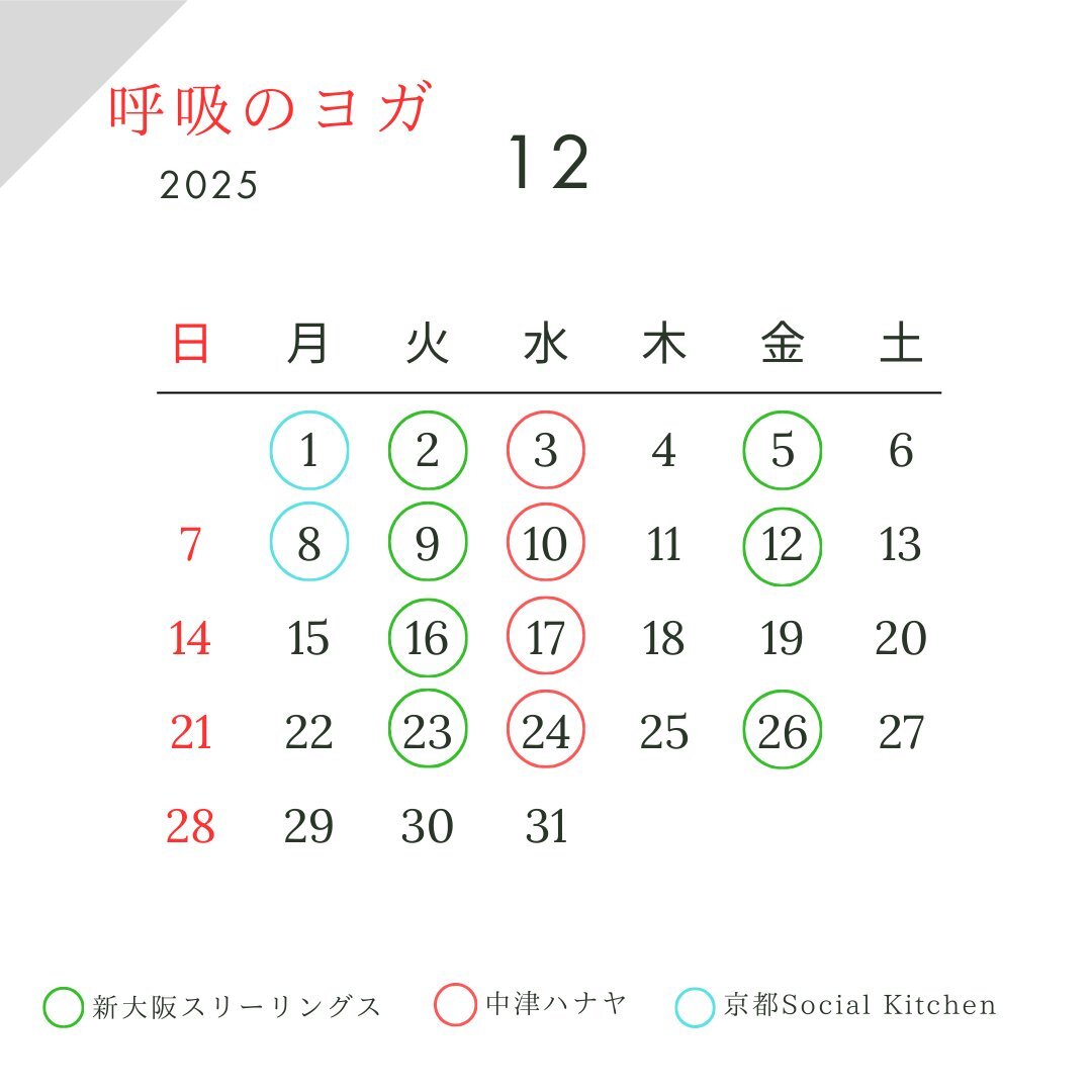 2025年12月の呼吸のヨガのスケジュールです。 受講生のお身体それぞれに合った気づきをお伝えしながら、ゆっくりと深い呼吸を使ってポーズをとるヨガクラスです。 今年の終わりを呼吸のしやすいカラダで整えましょう。 呼吸のヨガ 公式 instagram instagram.com/kokyunoyoga/ pic.x.com/YEEXGo4Z4n