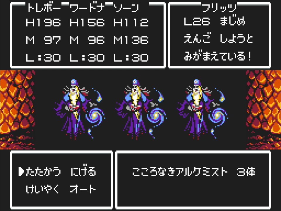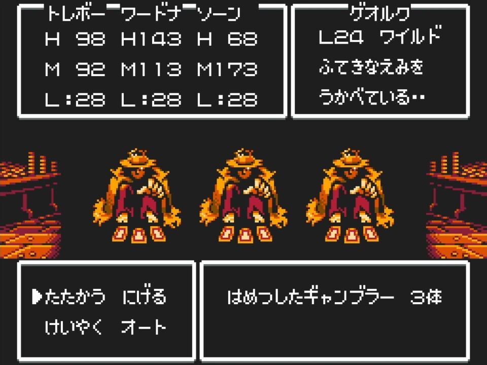 「ゲームセンターCX 有野の挑戦状 1+2 REPLAY」 カジノがあるけど未成年なので遊べない。そしてカジノなのにエンカウントする。はめつしたギャンブラーという、いかにもなモンスターがメイン。防御力と逃走率が高いけど、倒せば経験値が多いというアレ。 pic.x.com/3LhmmgMwma