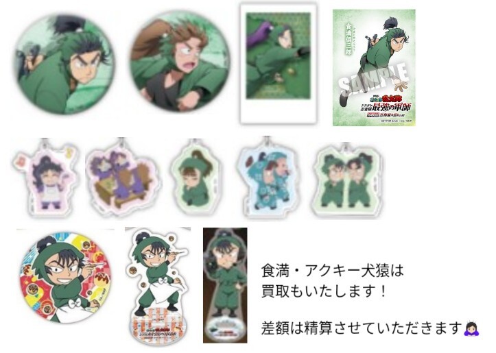 返信先:@sgmtkazsiはじめまして、こんばんは。夜分遅くに検索より失礼いたします。 当方アクキー木野小次郎竹高、稗田八方斎を各1所持しております。 定価+送料にてお譲りさせていただくこと可能でしょうか。現在出先のためお写真後ほど添付いたします。→