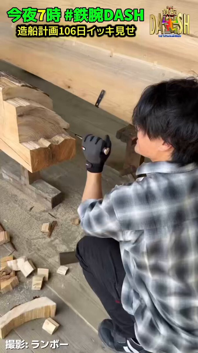 / 今夜7時 #鉄腕DASH💪🏻 \ ⋱ #DASHオフショット📸✨⋰ 舟造りほぼ皆勤賞・慎太郎の作業動画🛠️ 今夜の #造船計画 は 舟の心臓部・舟底300kgに挑みます🏗️🔥 #SixTONES #森本慎太郎