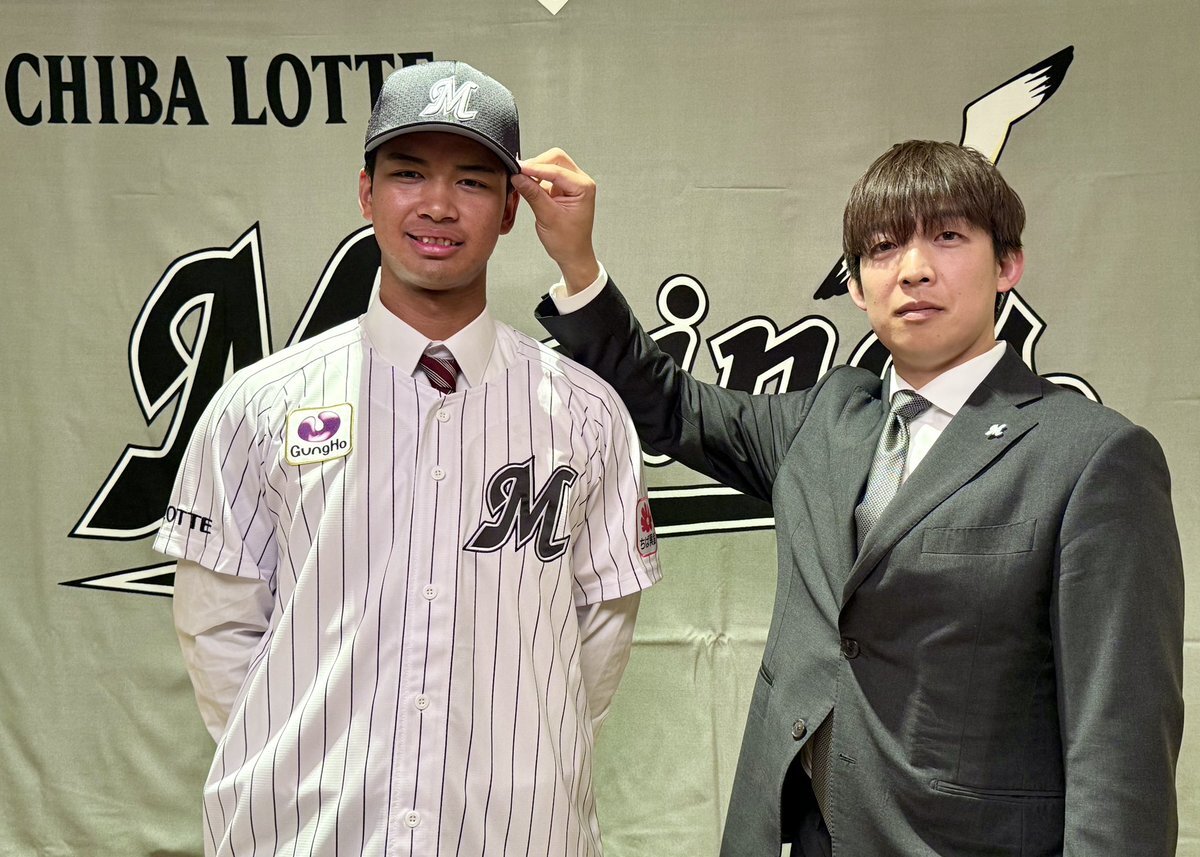 本日、ドラフト4位指名 #櫻井ユウヤ 選手と契約を行いました。 背番号は"55"です。 櫻井選手は緊張しつつも「55番をいただいたからには、体づくりをしっかり行い、ホームラン王を目指したいです!」と今後の目標を語ってくれました。 #chibalotte #広報