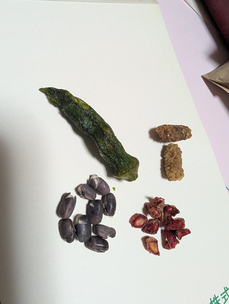 ドライフルーツ色々   ビルベリー(桑の実) ザクロ 小豆 オクラ 小豆とザクロが地味に美味しい🥰 pic.x.com/NllLL5cGht