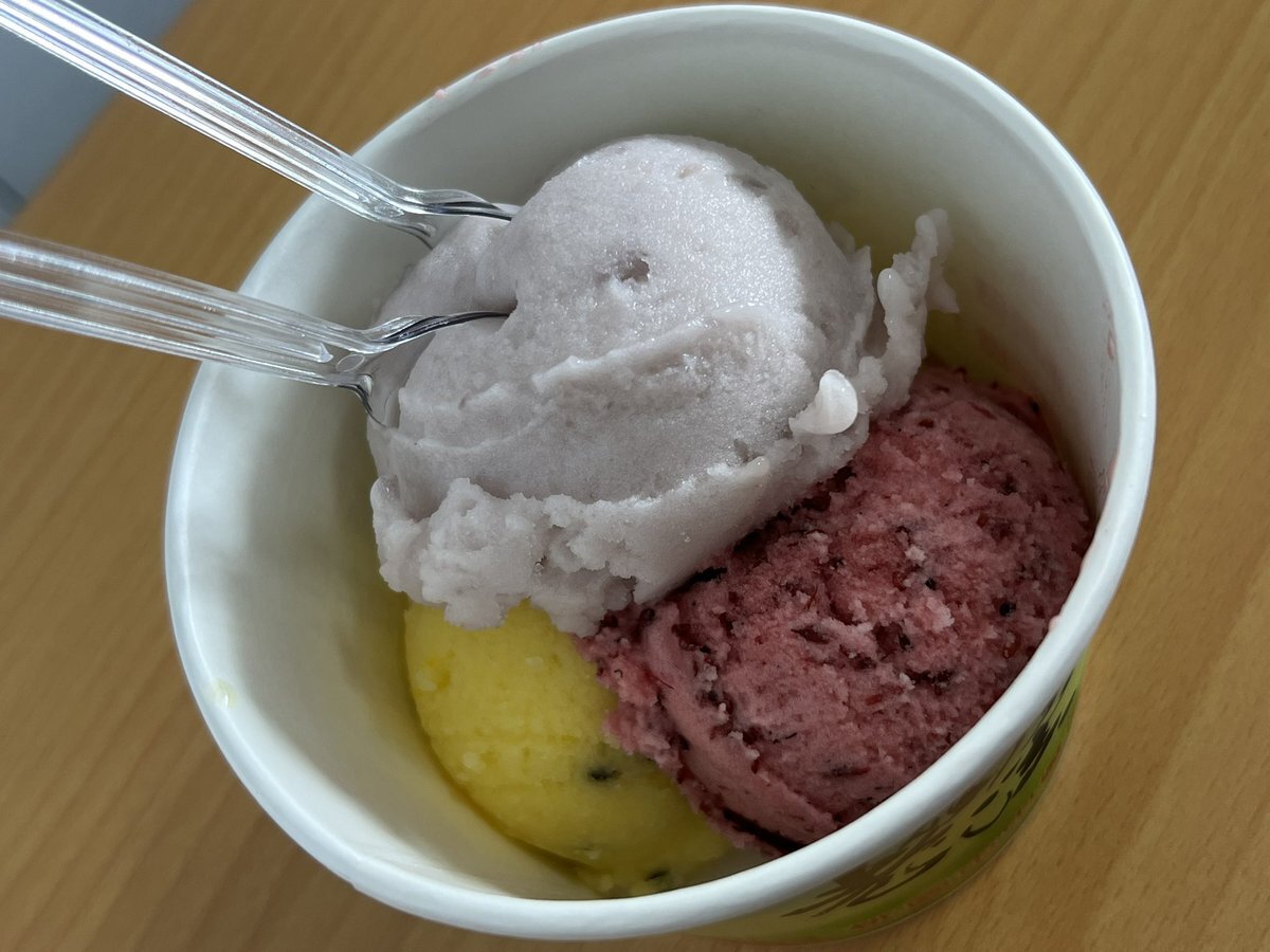 🇹🇼in中壢 ・老街溪綿綿冰 綜合冰  65元 芋頭・桑椹・百香果 桑の実のアイス食べたことないから食べてみた!タロイモのアイスもおいしかったし、あと2つは甘酸っぱいのがサッパリ美味しかった😋 pic.x.com/rEUA9n7dUk