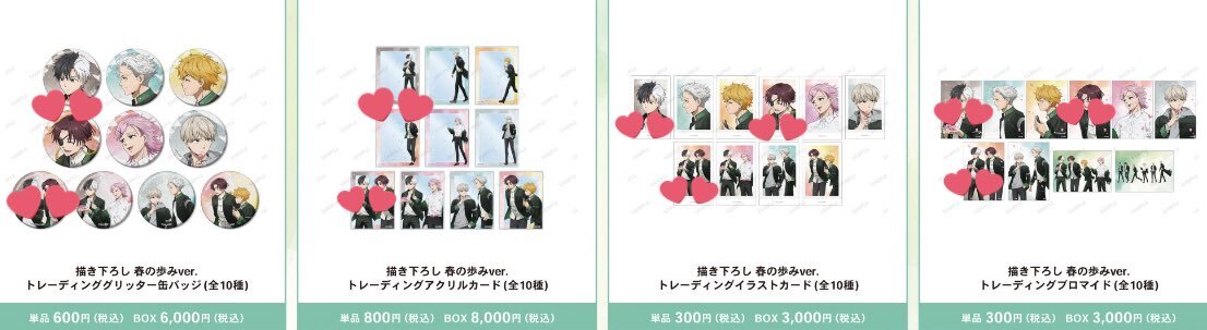 返信先:@___kazu1226初めまして。こんばんは。 検索よりお声掛け失礼致します。こちら5BOX予約予定なのですが、梅宮3種各5点⇔蘇枋3種各2点、蘇枋&楡井2点+任意7点の15:15での交換は可能でしょうか…?ご検討の程よろしくお願いいたします🙇‍♀️