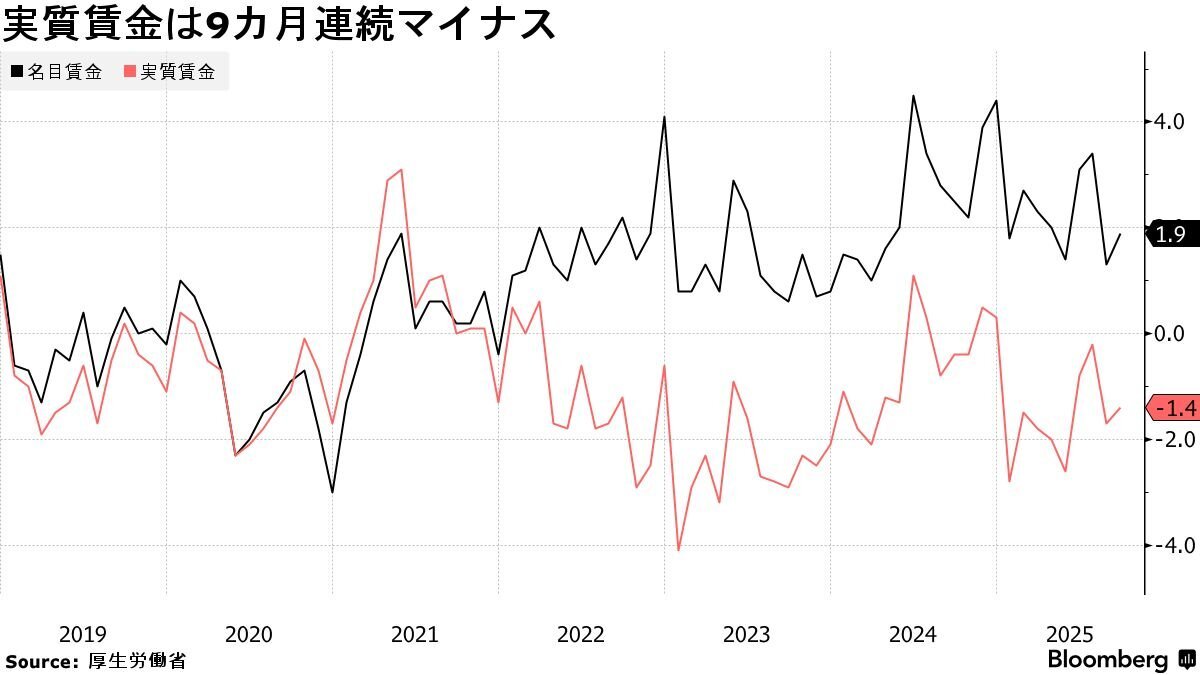 実質賃金9カ月連続マイナス、9月分 夏季賞与は24年ぶり水準(朝日新聞) 厚生労働省が6日に発表した9月分の毎月勤労統計調査で、物価の影響を考慮した働き手1人あたりの「実質賃金」(速報)は前年同月比1.4%減り、9カ月連続のマイナスとなった news.yahoo.co.jp/articles/1c948…