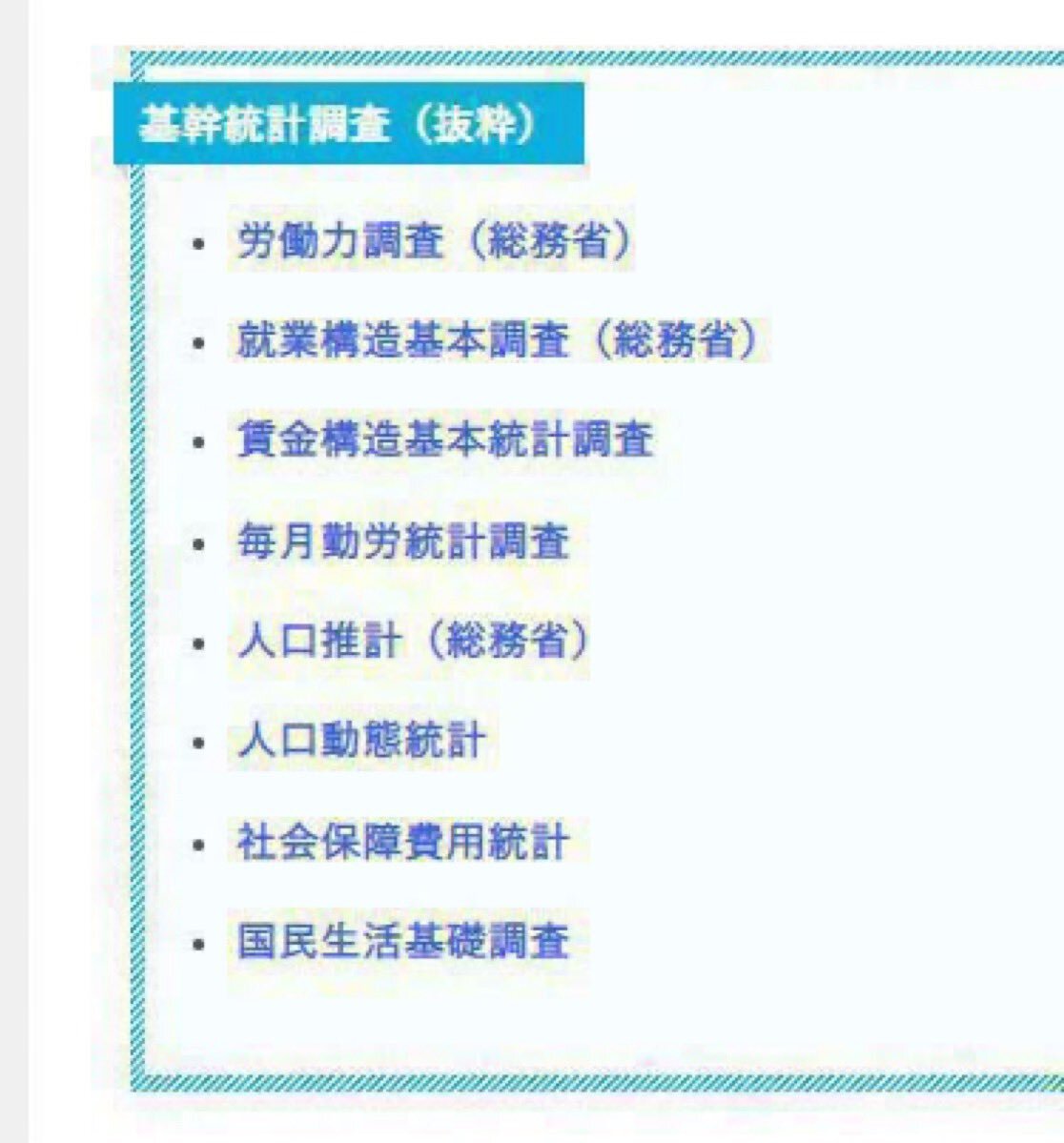 正解はC「就労条件総合調査」。 【基幹統計(抜粋)】 ・労働力調査(総務省) ・就業構造基本調査(総務省) ・賃金構造基本統計調査 ・毎月勤労統計調査 ・人口推計(総務省) ・人口動態統計 ・社会保障費用統計 ・国民生活基礎調査 就労条件総合調査は含まれない。 pic.x.com/k5Gn5EWCvo