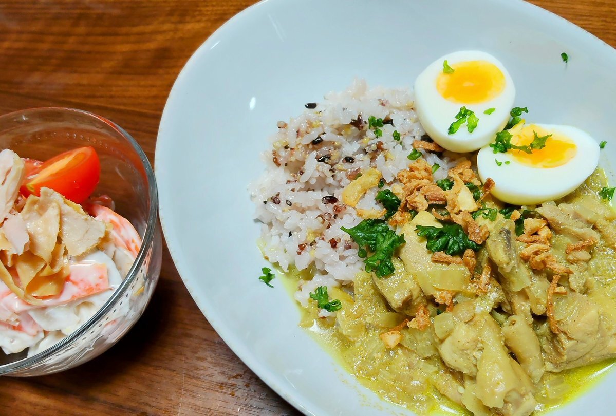 簡単スパイスカレーだけどなんだか満足度めっちゃ高くてビックリした✨ エスビーの「3つのスパイスで作る!ミルクチキンカレー」でした! #おうちごはん 最近マイブームの蓮根サラダは水切りヨーグルトのドレッシングでこっちも定番にしたい🥰 pic.x.com/vDrhqH2VLA