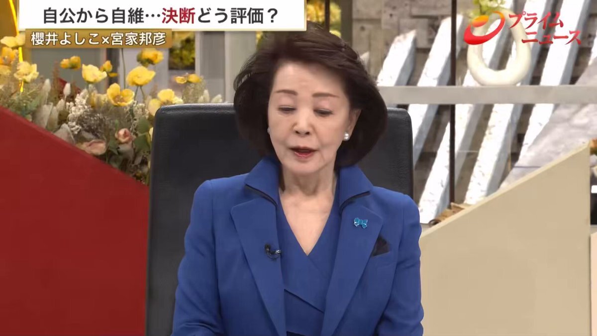 【悲報】公明党さん、ボロクソに言われる 櫻井よしこ氏「公明党の方からさようならって出て行ってくれた。ものすごくラッキーだった。高市さん、何の苦労もなしに足枷、本当に公明党は足かせだったと思うんだけど足かせさんがいなくなっちゃった。そんなチャンスないですよ」