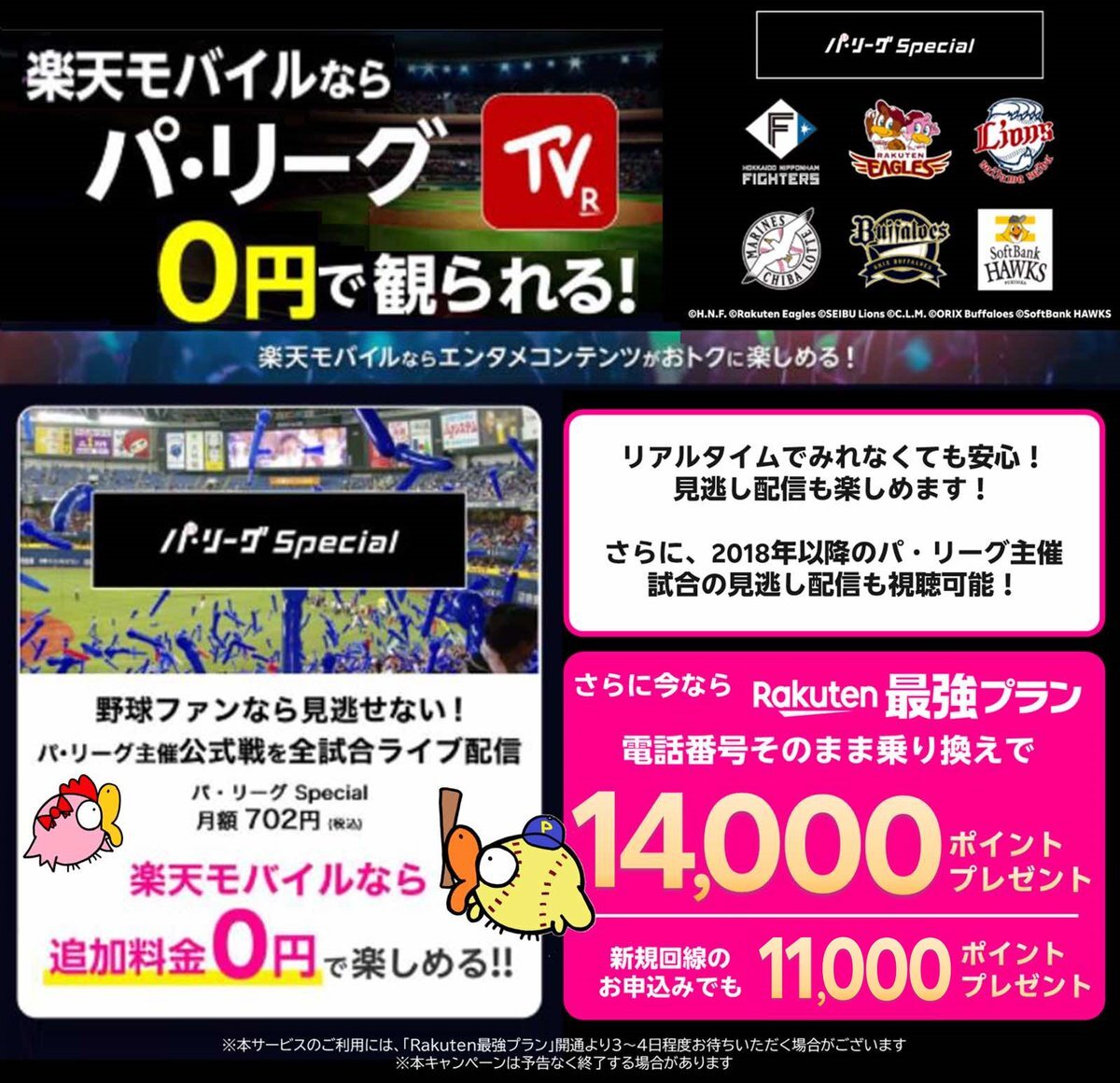 ⚾️#野球 好きにはたまらん📣 楽天モバイルのご利用者は #パ・リーグ 主催公式戦”が見放題‼️ 野球も #お得 にお楽しみいただけます✨ 従業員紹介キャンペーンでのご契約は👇 r10.to/hk1E46 楽天🆔でログインお申込でエントリー 最大14,000Pゲット! #近藤健介 #源田壮亮 #浅村栄斗 pic.x.com/0LHaq0jZJc