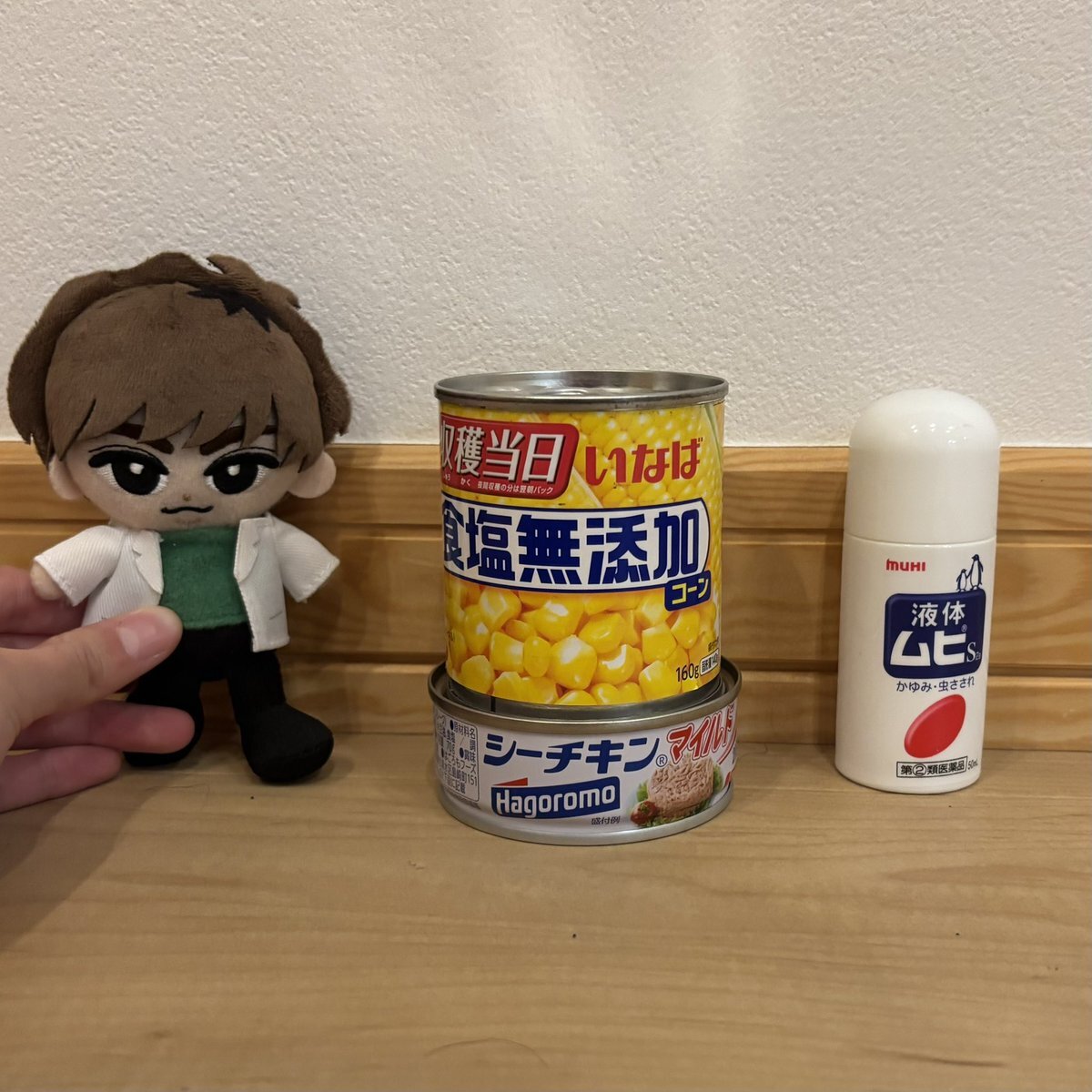 ソフビ、高さは液体ムヒだったけど、幅と奥行きは液体ムヒじゃなくてコーン缶とツナ缶の合わせ技でした ここで訂正しておきます pic.x.com/SGTAcr5mKU x.com/25mama1127/sta…