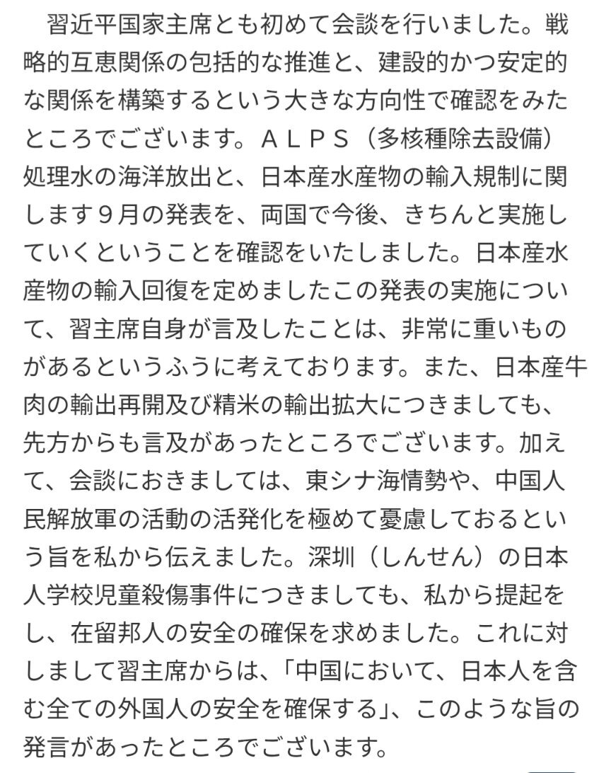 返信先:@i4CXbFKvwRUpJs0石破と習近平の会談 ALPS処理水海洋放出 日本産水産物輸入回復 東シナ海状況、人民解放軍活動活発化 深圳日本人学校児童殺傷事件 会談の内容はこれくらいみたいだぞ。 pic.x.com/6oYaNRbCNv