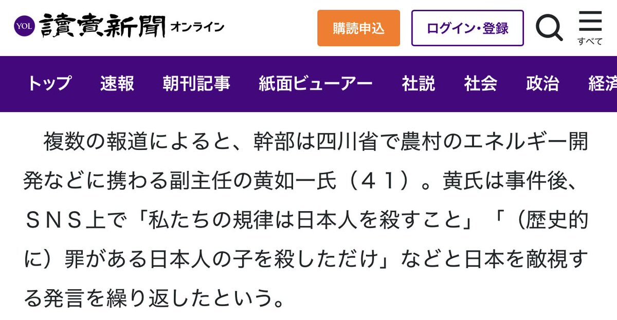 返信先:@longxizhon30576他1人深圳日本人学校の日本人男児刺殺事件(2024年9月):10歳男児が腹部・太腿を複数回刺され、内臓損傷で死亡。中国人容疑者が反日感情から犯行。証拠はBBC・朝日新聞報道。